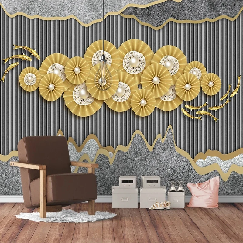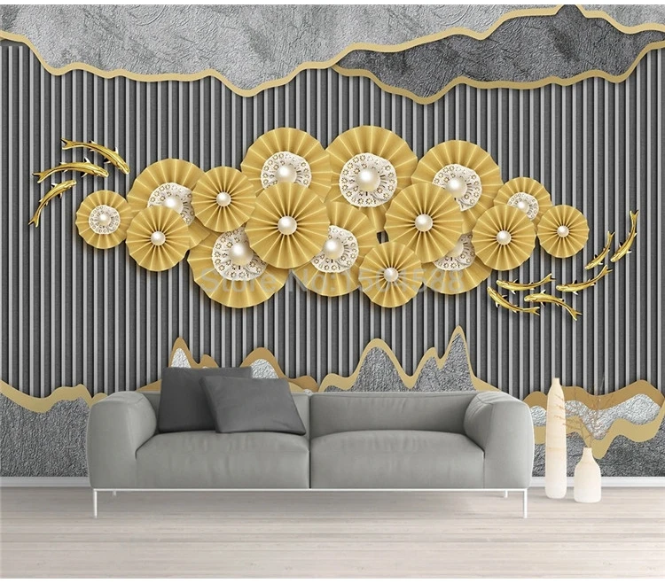 Настенные 3D-обои на заказ, стерео фоны с золотыми геометрическими линиями, декор для стен гостиной, спальни, домашний декор, Papel De Parede 3 D