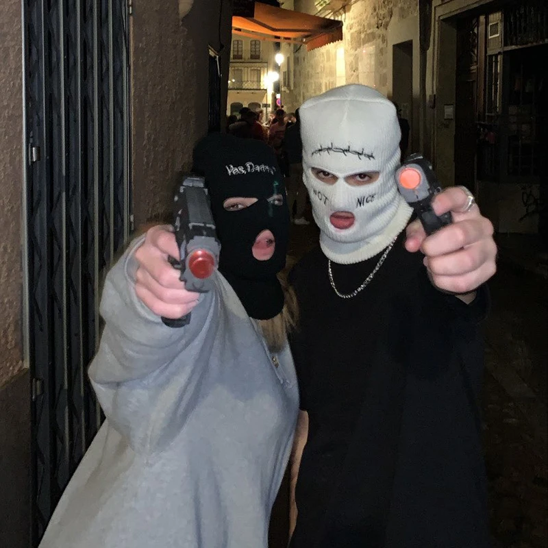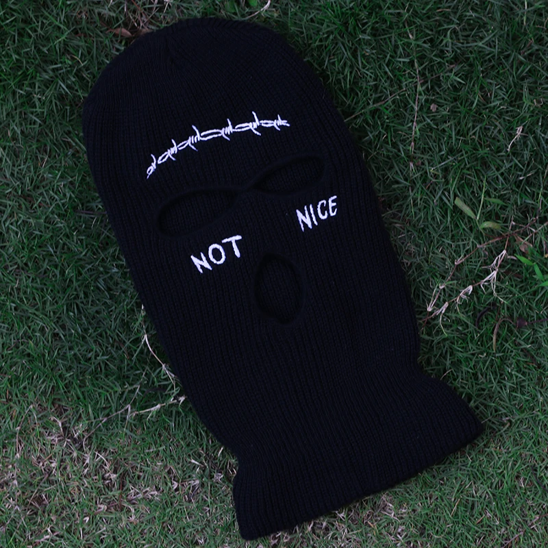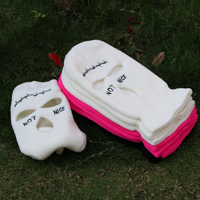 Некрасивая вязаная Балаклава с вышивкой и тремя отверстиями, армейская тактическая зимняя Лыжная маска CS для верховой езды, вечерние шапочки для выпускного вечера, теплая маска