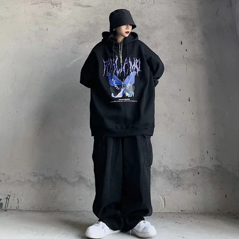Толстовка женская оверсайз в стиле Харадзюку, винтажная уличная одежда, Топ с длинным рукавом, свитшот с принтом бабочки, худи, одежда на лето