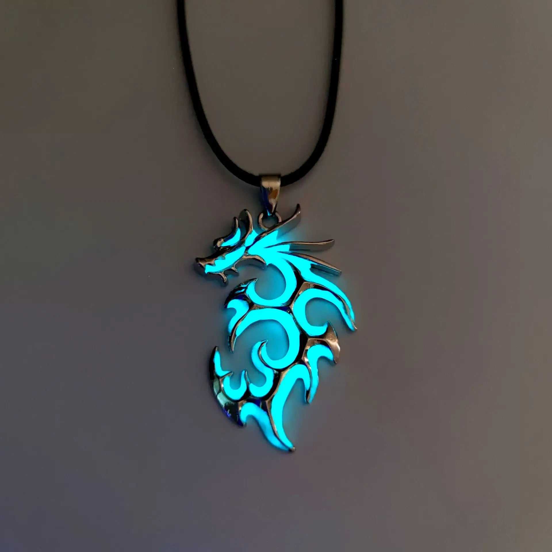 Новые товары, ожерелье RetroLuminous, мужской металлический кулон в виде животного, светится ночью, ожерелье с драконом и пламенем, рождественский подарок