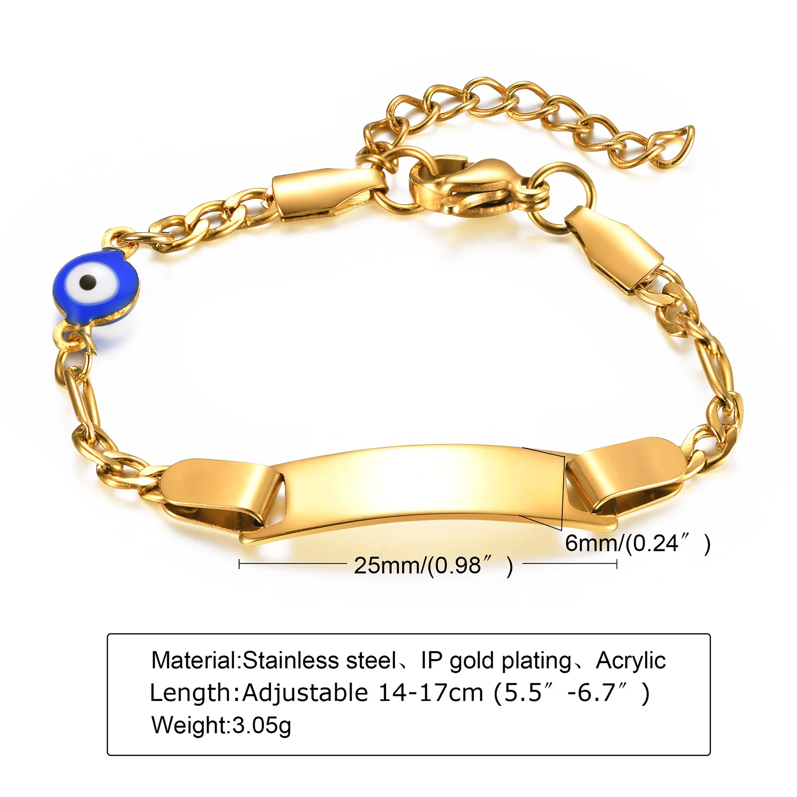 Персонализированный детский браслет с голубым глазом, цепочка из нержавеющей стали с Фигаро, именной браслет для мальчиков и девочек