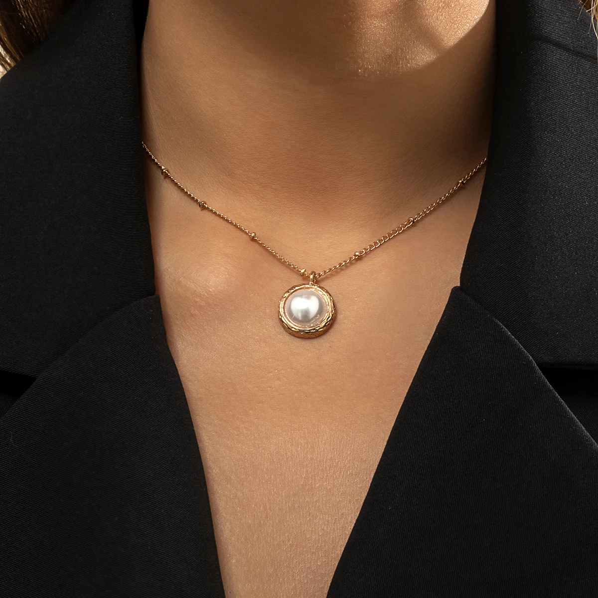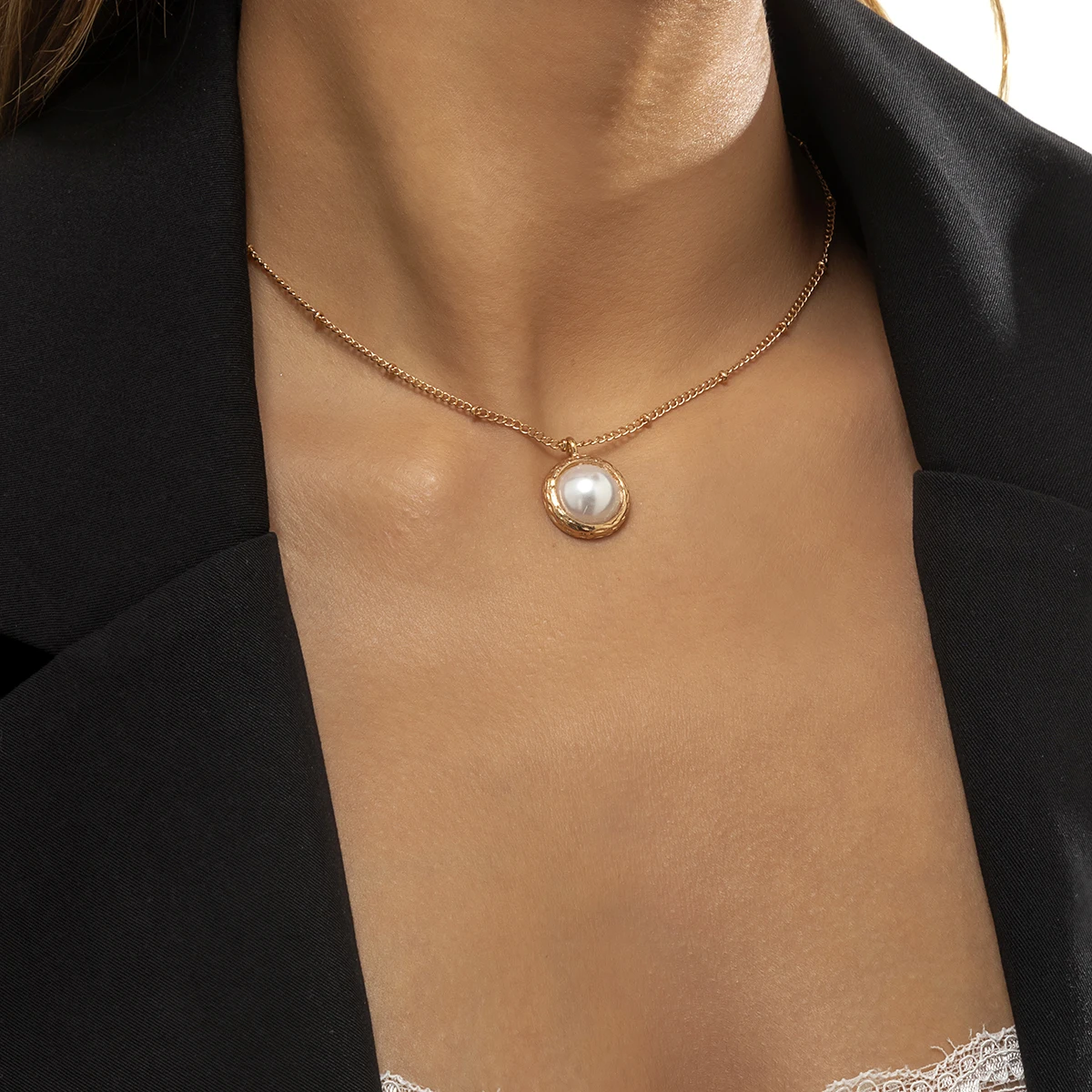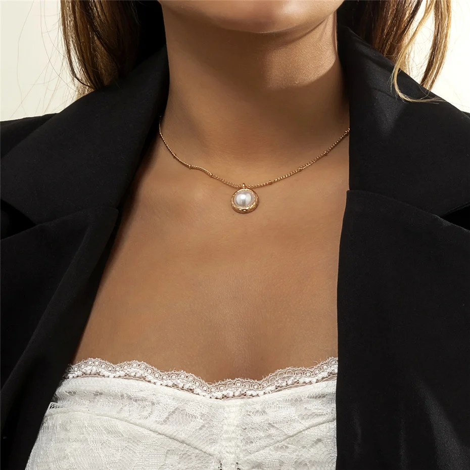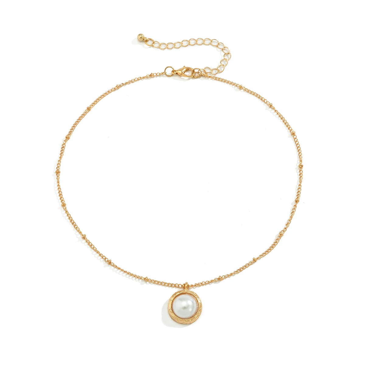 Чокер Ingemark женский с подвеской-монеткой, инкрустированный жемчугом в минималистском стиле, тонкая цепь в готическом стиле, Модная бижутерия в стиле бохо, аксессуары для шеи