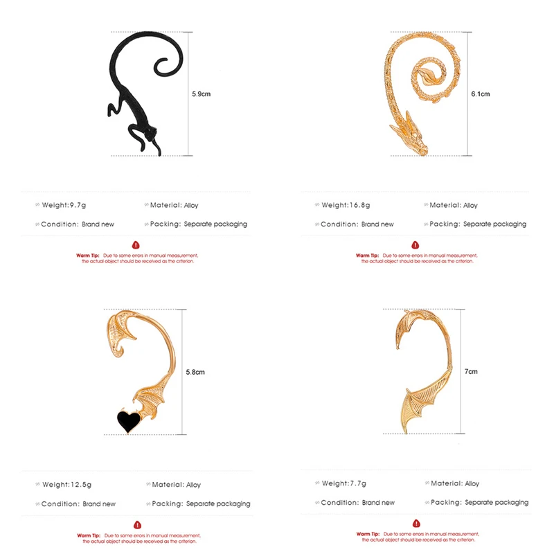 Женские серьги-гвоздики Goth золотого и серебряного цвета, серьги-гвоздики с кошачьими ушками без имитации, пирсинга, серьги-подвески в форме сердца, орла, летучей мыши, крыла, эльфа, ушные манжеты