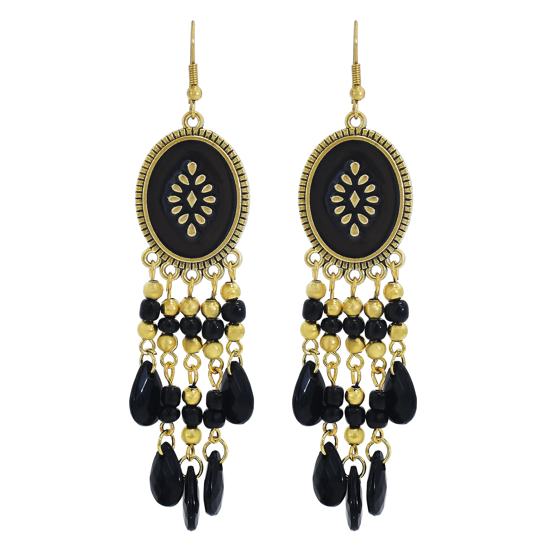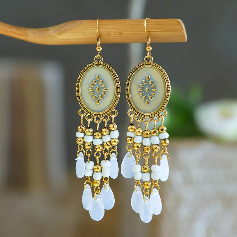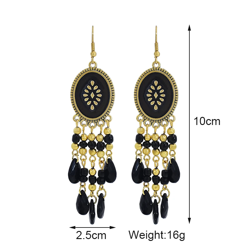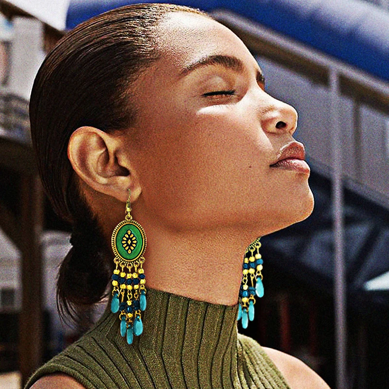 Винтажные этнические акриловые висячие серьги с кисточками для женщин, классические элегантные длинные серьги в стиле бохо из сплава золотого цвета, украшения вечерние Ринок