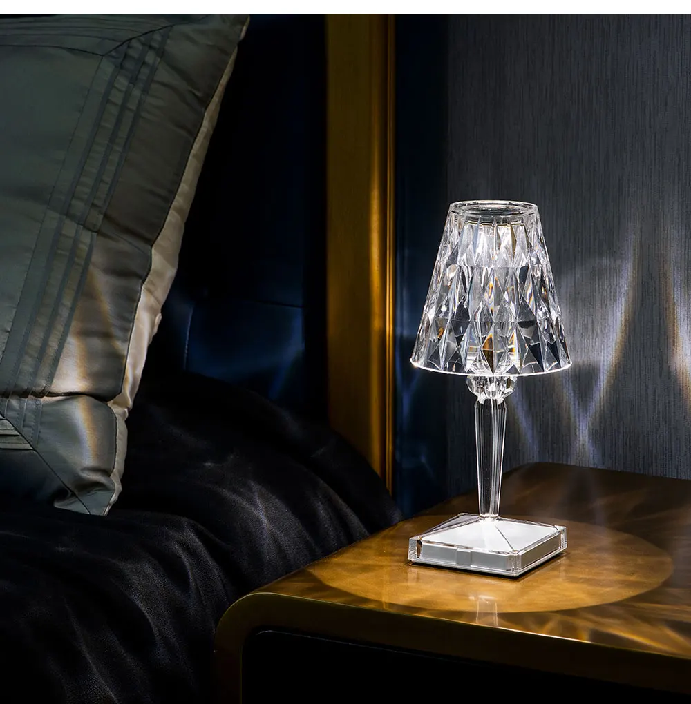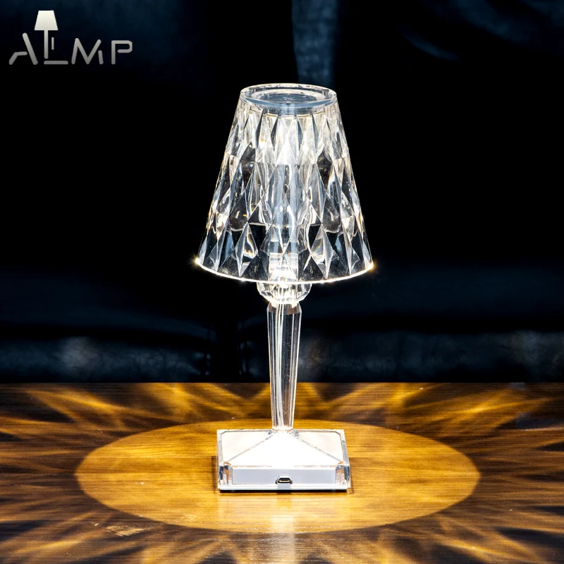 2022 Светодиодная настольная лампа с проекцией и алмазным кристаллом, зарядка через USB, сенсорный датчик, романтическая ночник, украшение для ресторана, настольное освещение