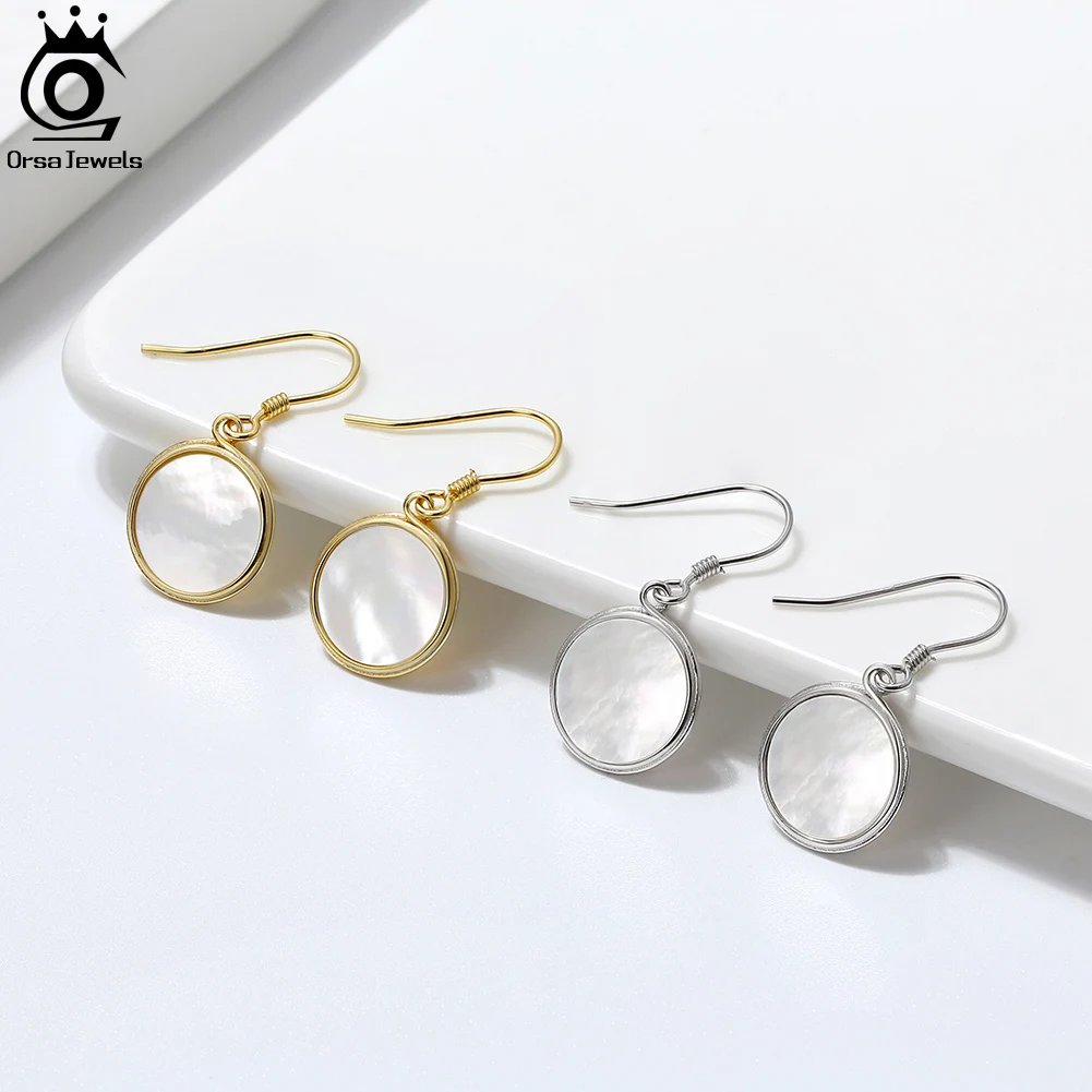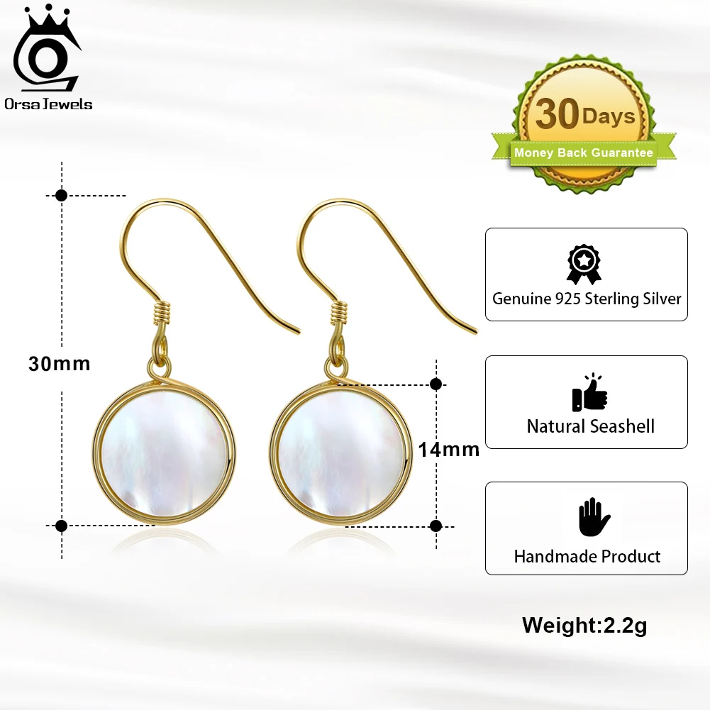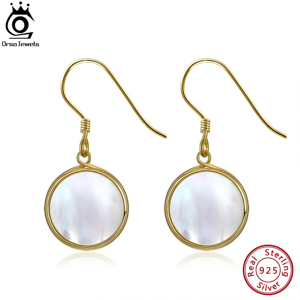 ORSA JEWELS натуральные висячие серьги с ракушками для женщин и девочек, однотонные Элегантные Серьги с драгоценными камнями из стерлингового серебра 925 пробы, ювелирные изделия GME13