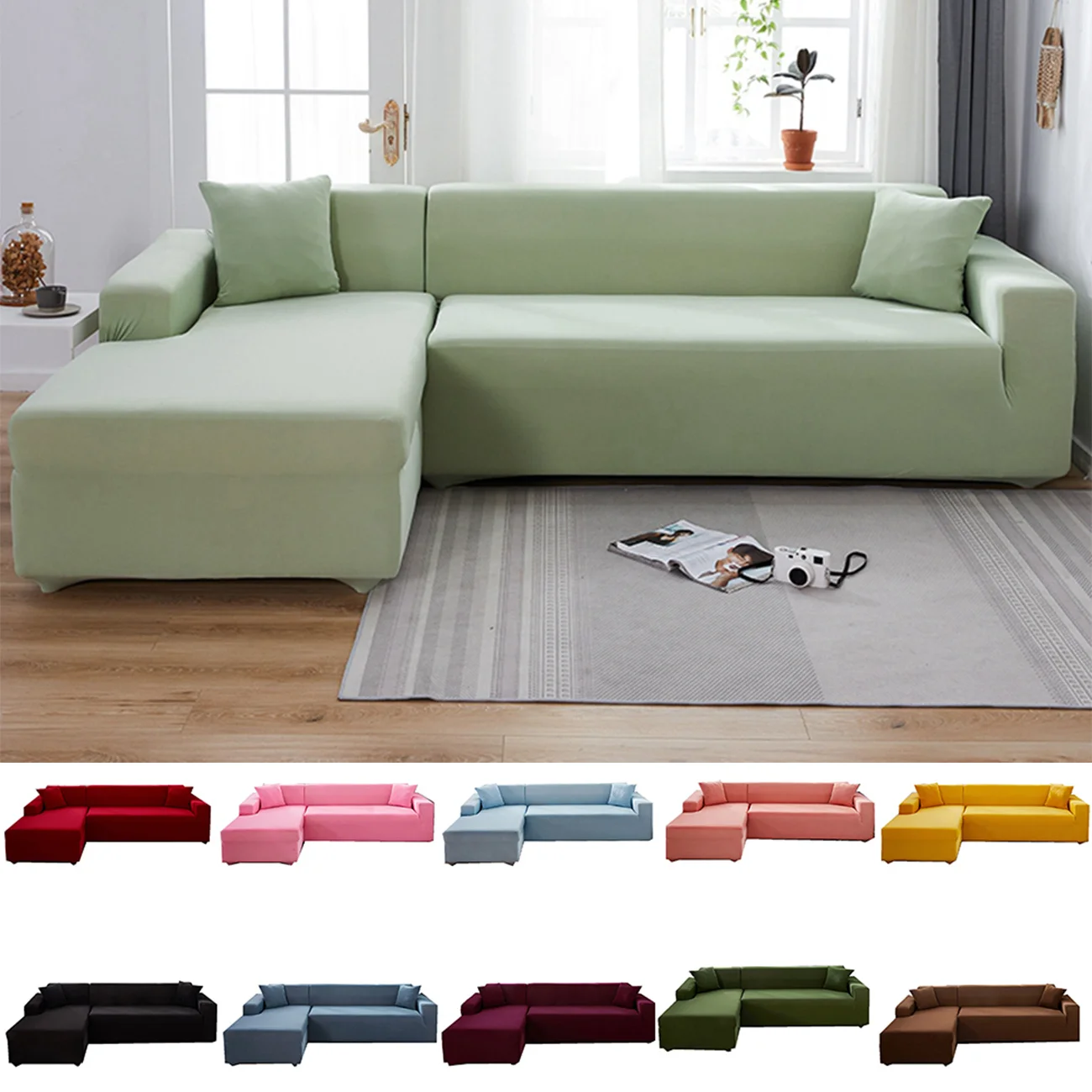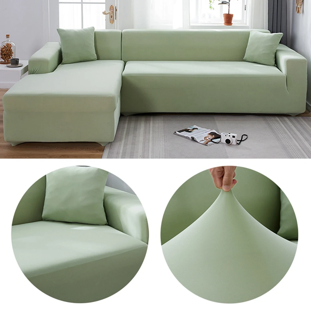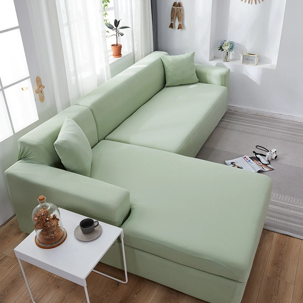 Эластичное кресло светло-зеленого цвета, однотонный чехол на диван для гостиной, мебельная обивка L-образной формы, 1, 2, 3-местный диван Protecti