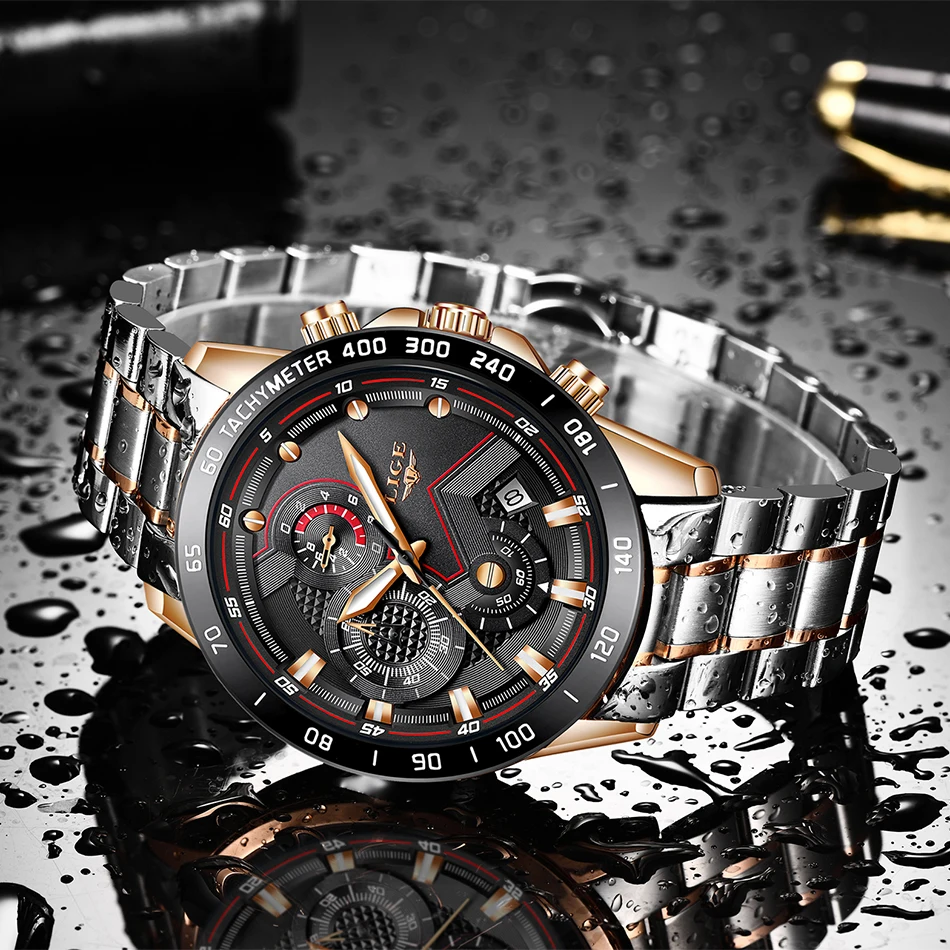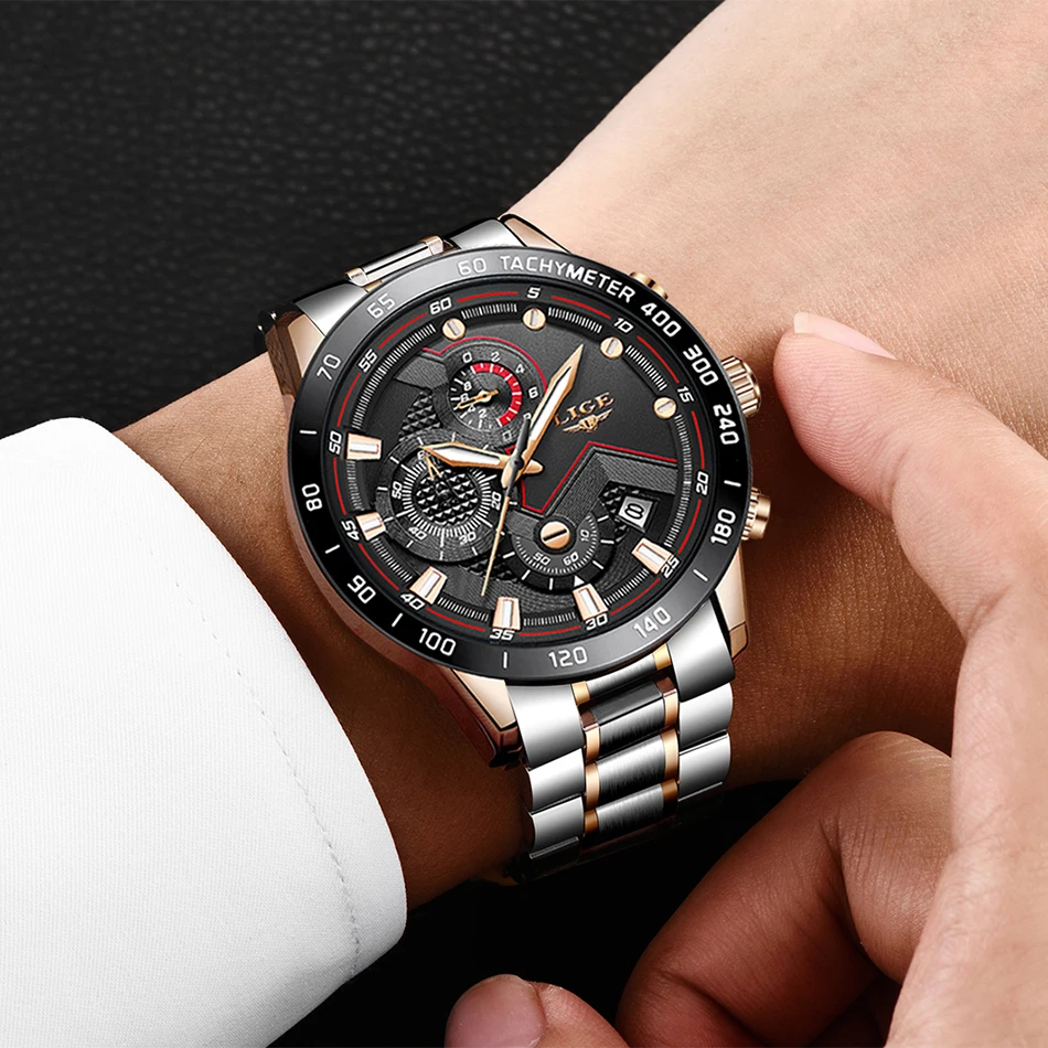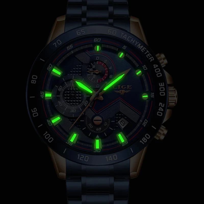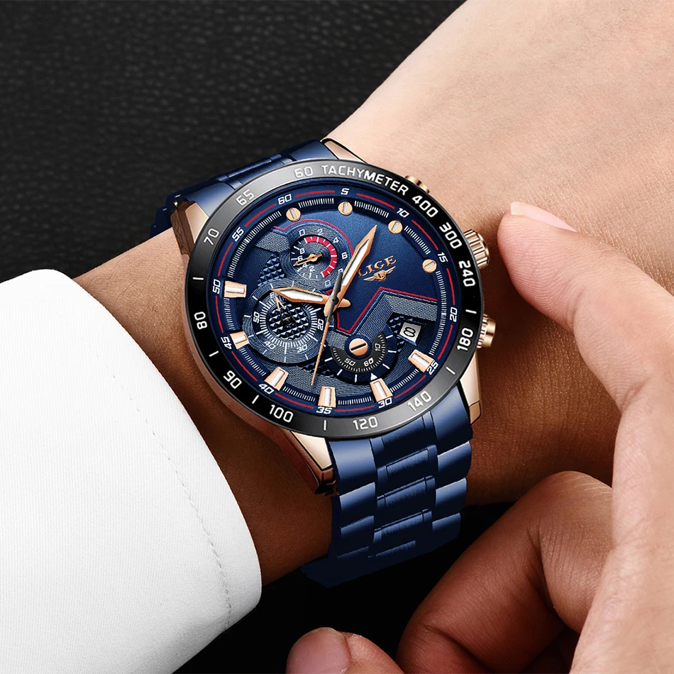 Часы наручные LIGE Мужские кварцевые, модные брендовые Роскошные спортивные с хронографом из нержавеющей стали, 2022
