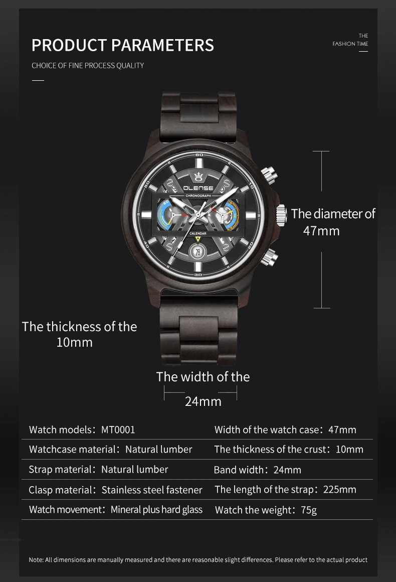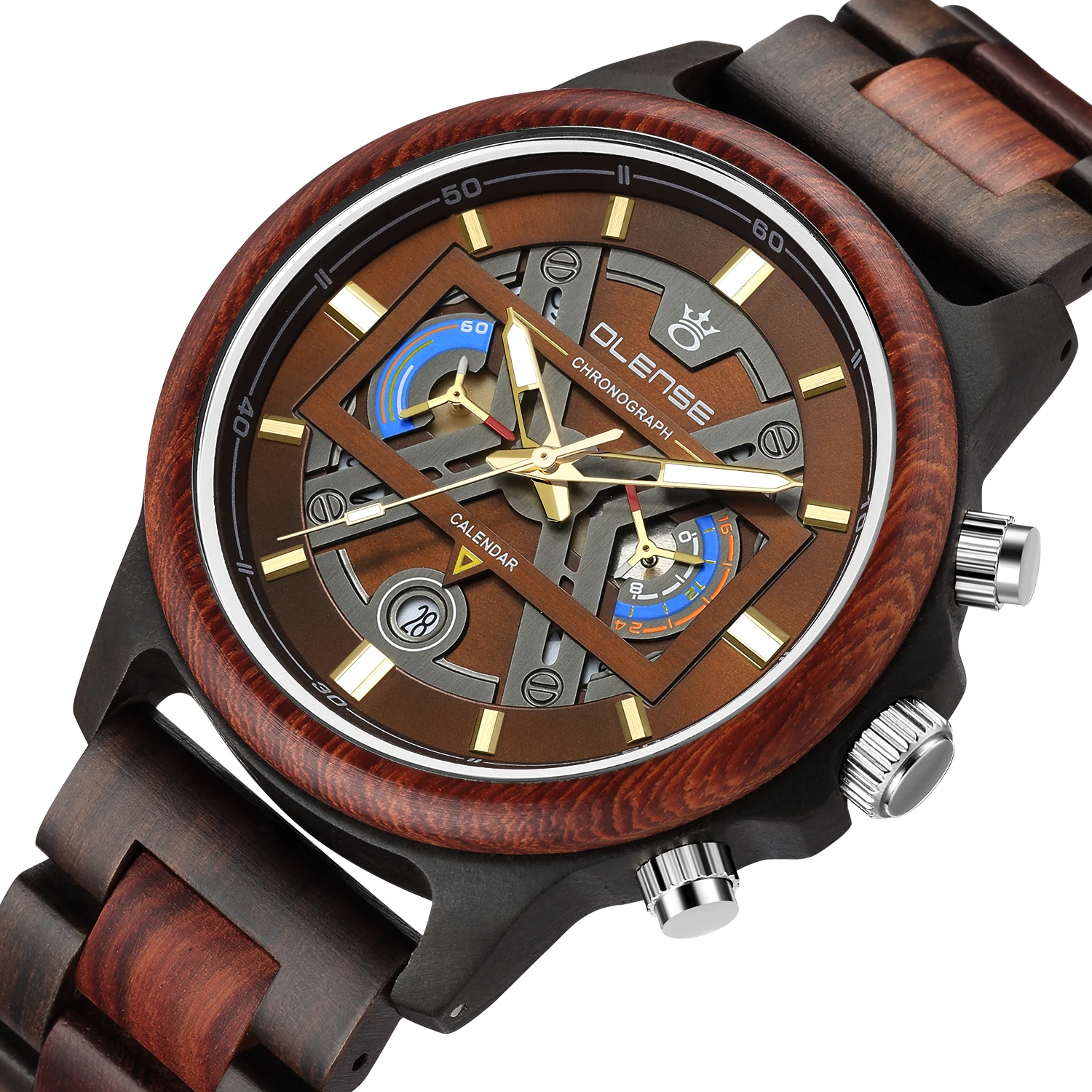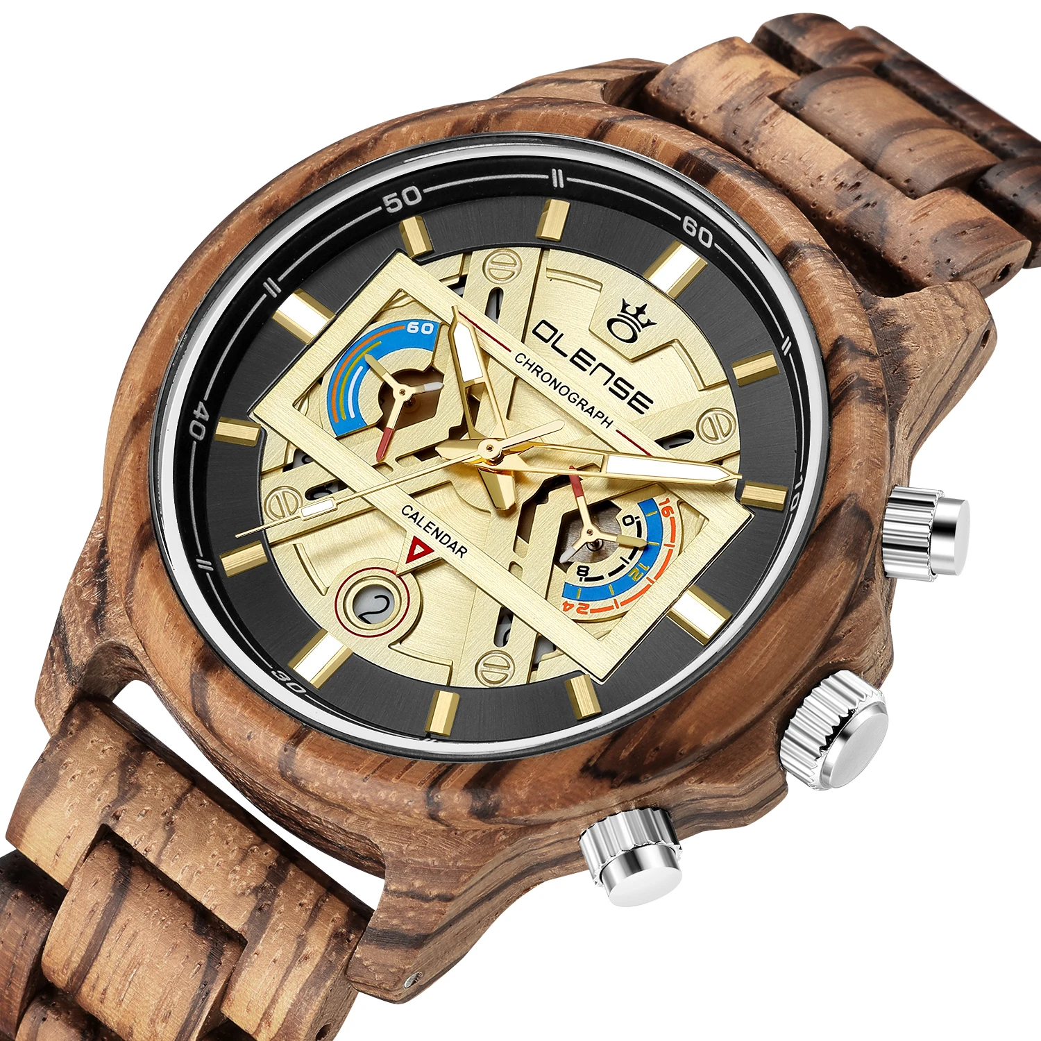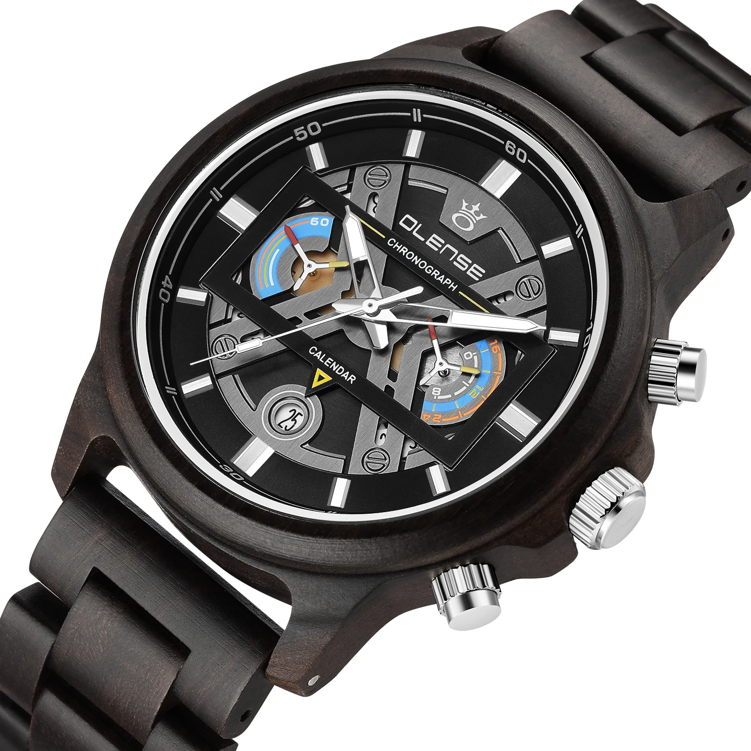 Новинка 2022, мужские классические деловые кварцевые часы OLENSE, деревянные Модные Роскошные наручные часы, многофункциональные деревянные спортивные часы от лучшего бренда