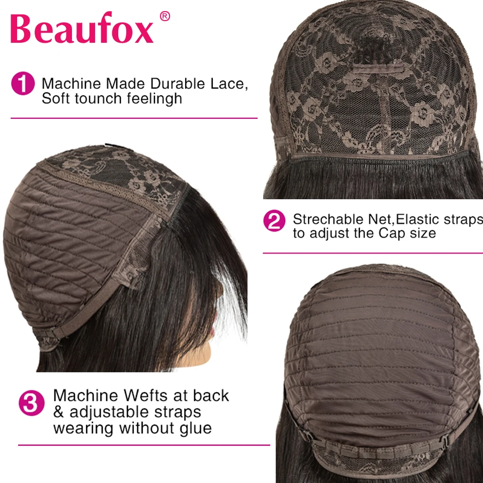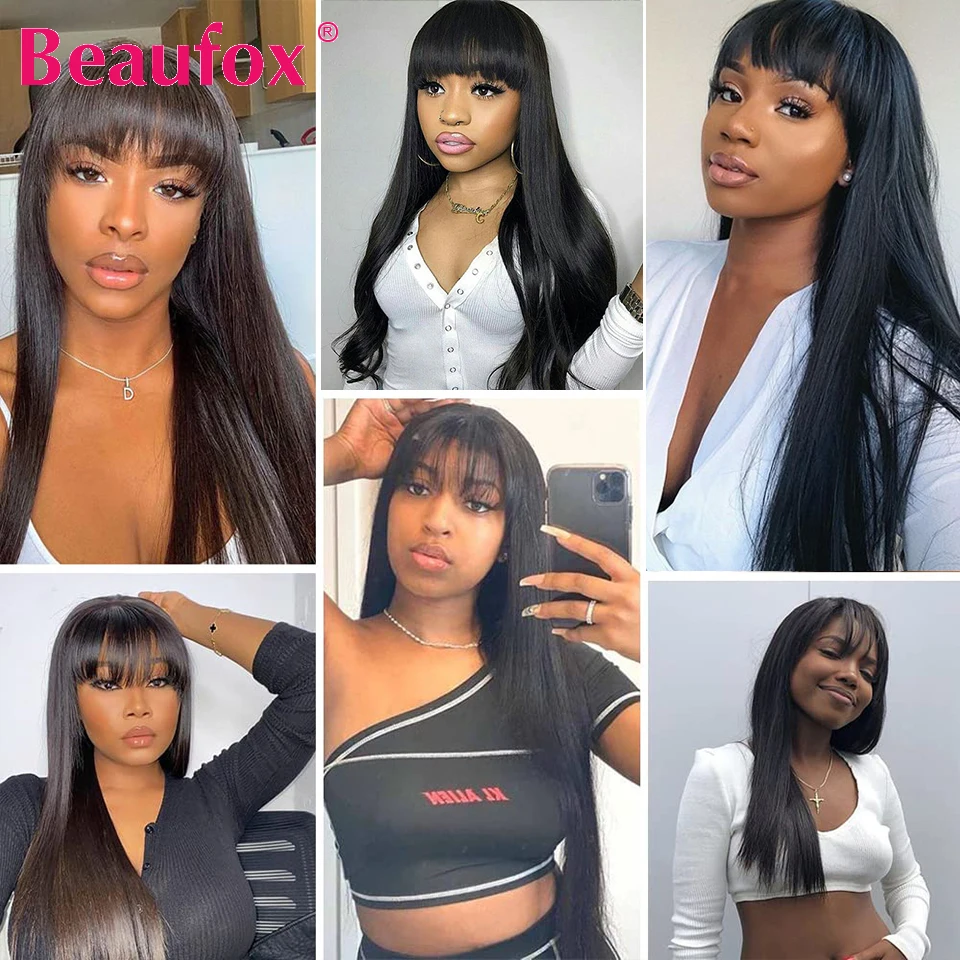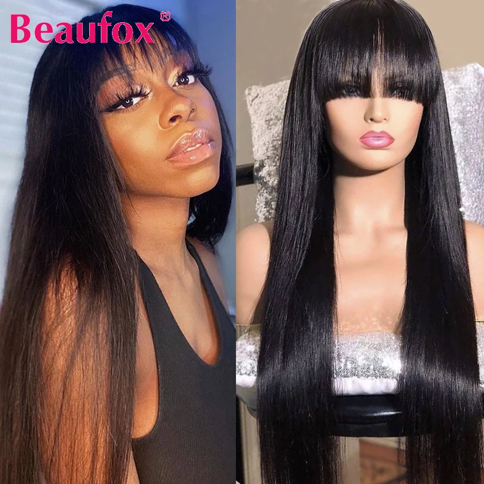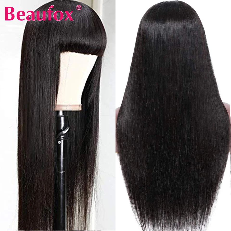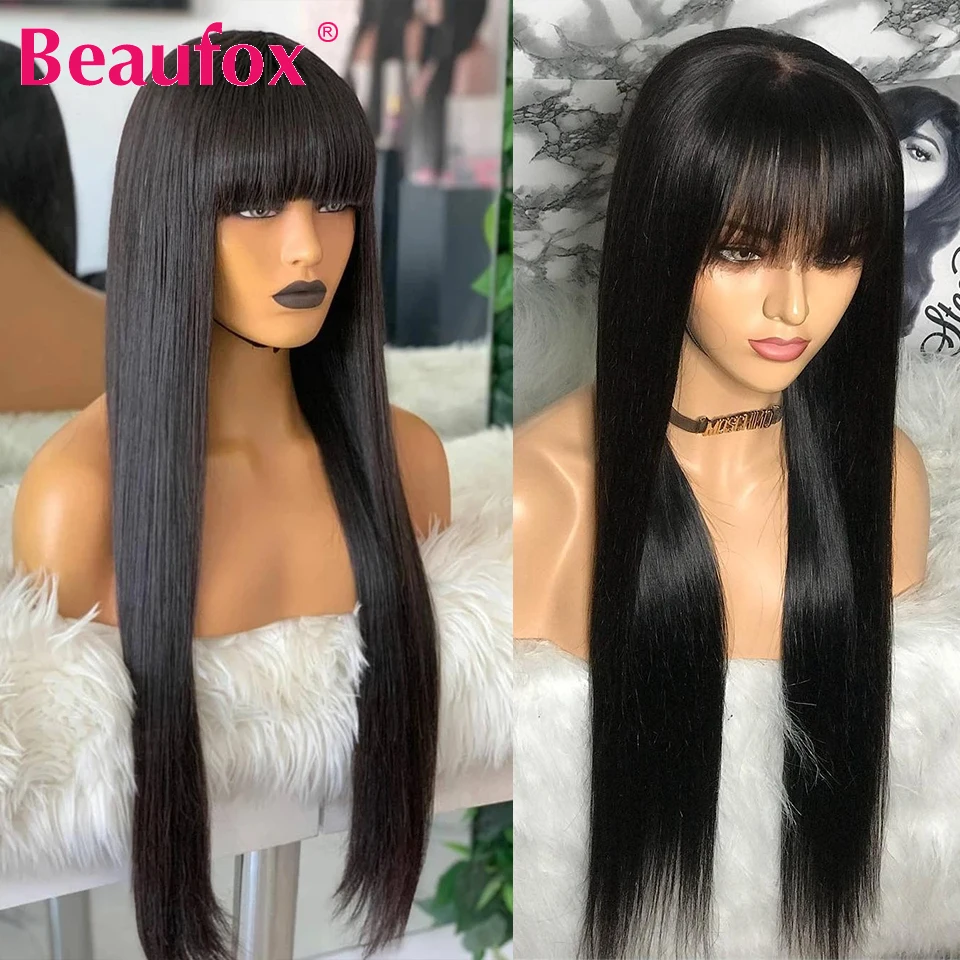 Прямые парики Beaufox из человеческих волос с челкой, малазийские парики из человеческих волос для женщин, без кружева, полностью машинное изготовление, длинные парики с челкой, челки