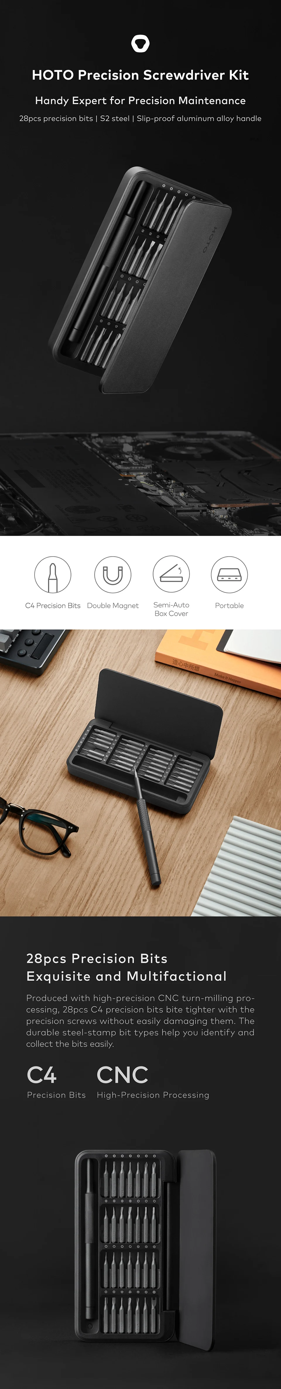 Набор прецизионных отверток Xiaomi HOTO 28 в 1, Многофункциональный ручной инструмент, набор отверток, магнитный Алюминиевый корпус для домашнего творчества