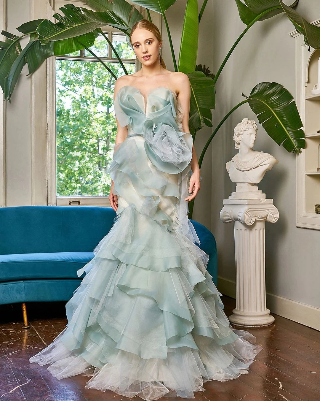 Темно-зеленые вечерние платья из тюля с оборками, бальное платье, д...