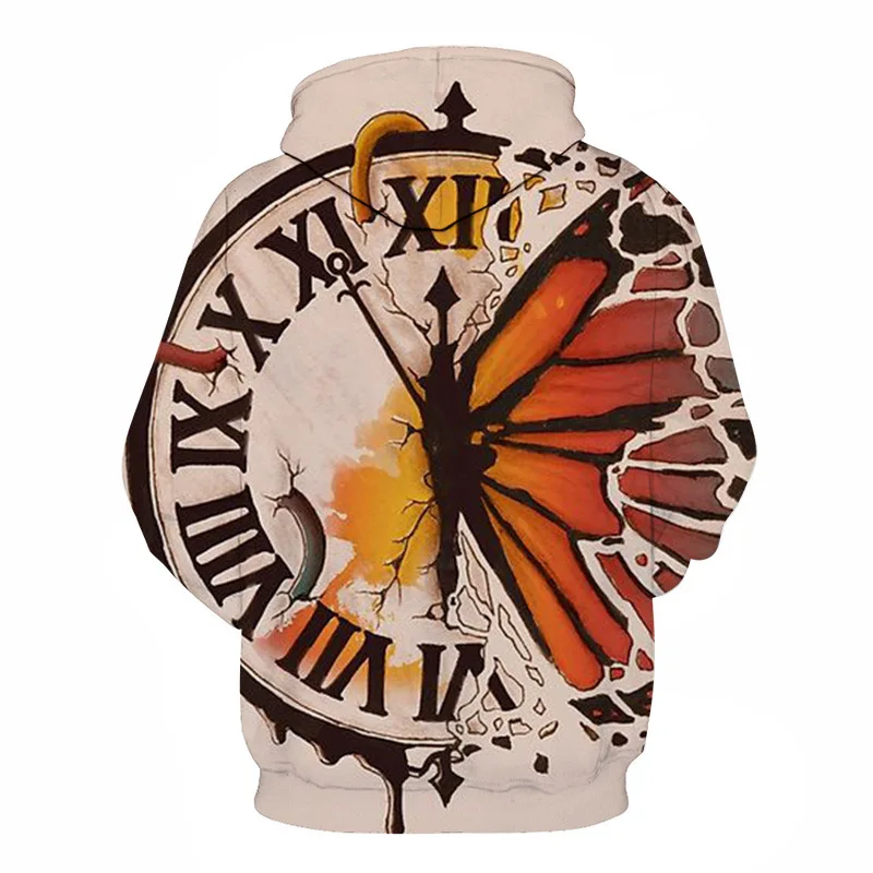 Свитшот мужской в стиле Харадзюку, Повседневный хлопковый свитер унисекс с 3D-принтом бабочки и часов, спортивная одежда для взрослых