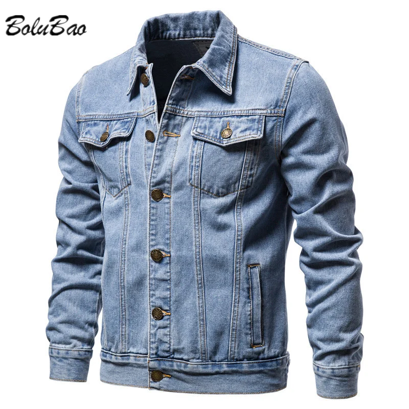 Мужская однобортная джинсовая куртка BOLUBAO, повседневная однотонная куртка с отложным воротником, приталенная качественная джинсовая куртка для весны и осени