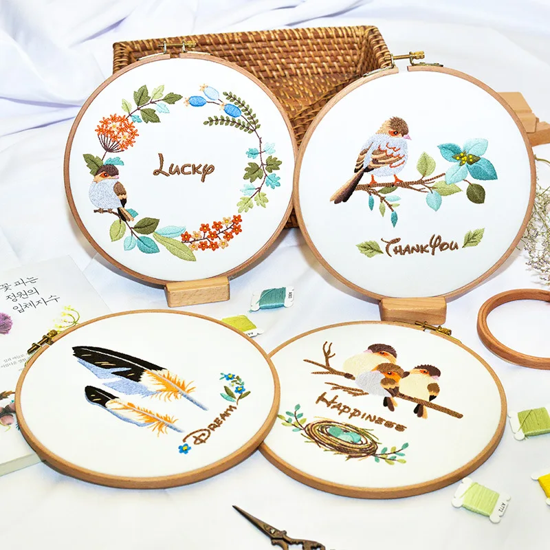 Набор для вышивки с живыми птицами, набор для рукоделия сделай сам, с милыми птицами и перьями, для начинающих, вышивка крестиком, искусство (без кольца)