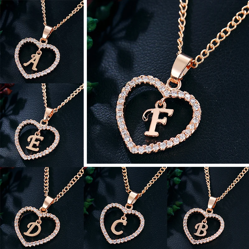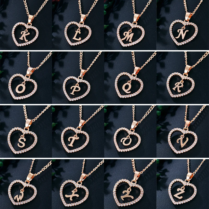 Ожерелье женское с кулоном в виде сердца, 26 букв, с цирконом