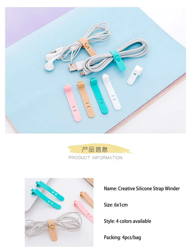 Силиконовый ремешок 4 шт.лот, мягкая лента для хранения наушников и...