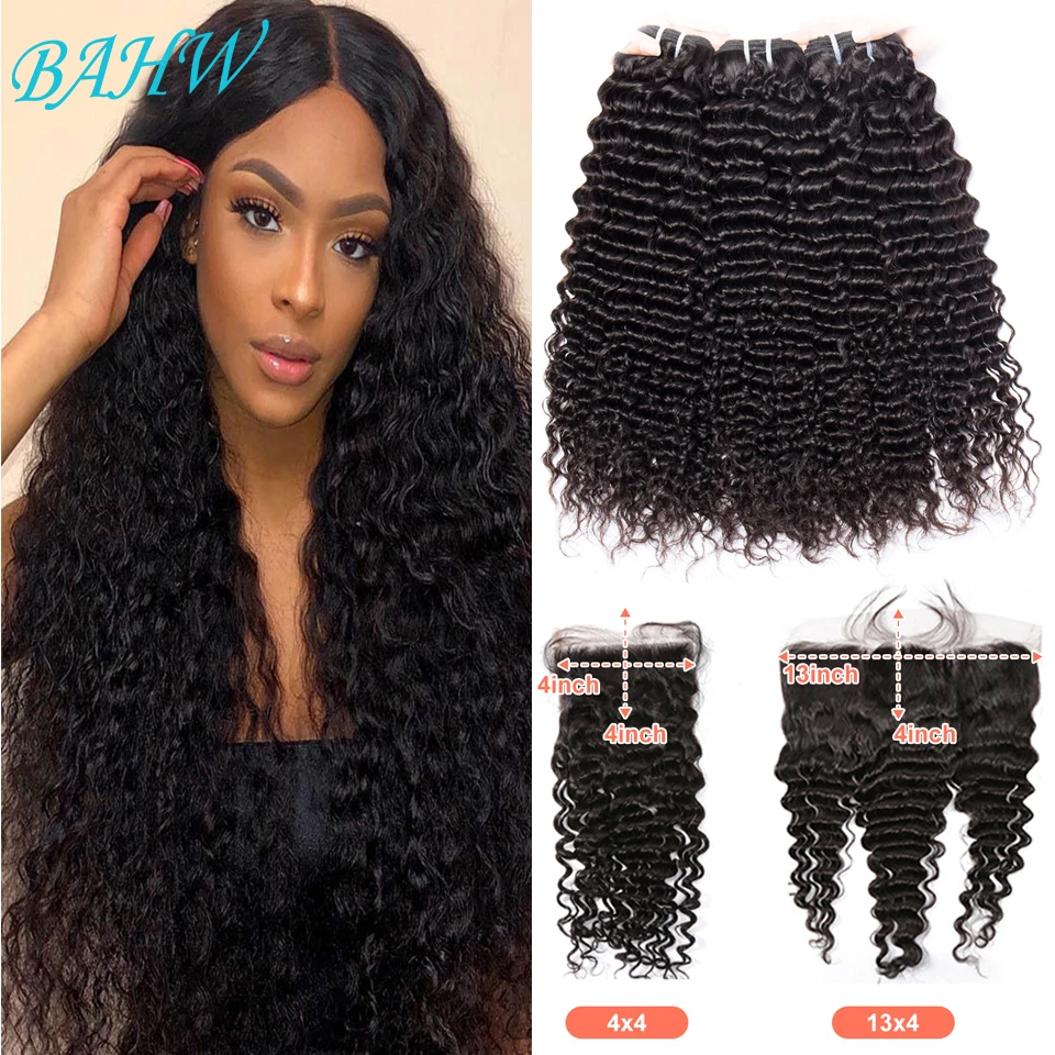 BAHW глубокая волна пряди с закрытием Малайзия человеческие волосы глубокая кудрявая пряди с закрытием Remy волосы пряди с 13X4Lace фронтальная