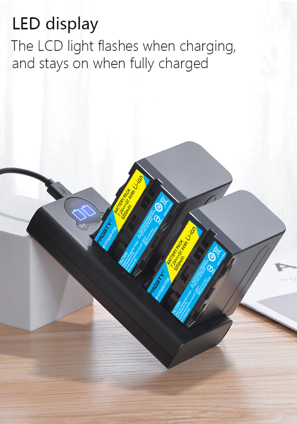 NP-F750 NP-F770 Аккумулятор для камеры 5200 мАч + двойное зарядное устройство со светодиодной подсветильник кой USB для Sony QM91D CCD-RV100 TRU47E YN300Air II