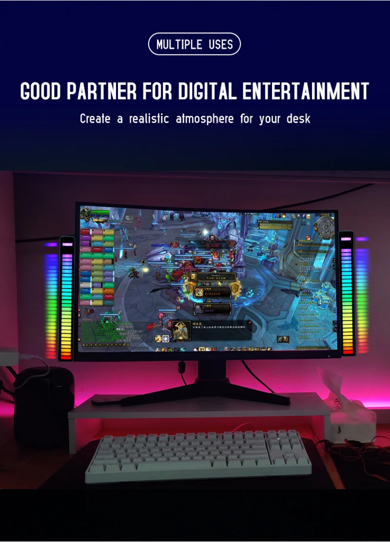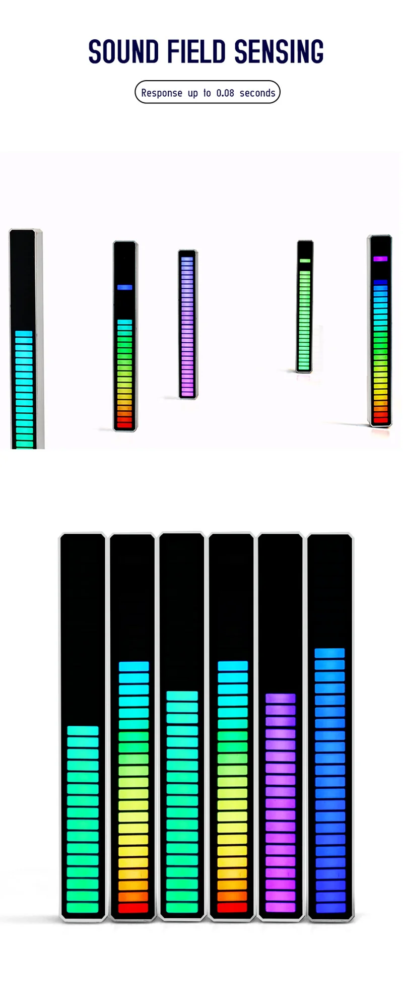 Материал: АБС + электронные компонентыЦвет: серебристыйРазмер: 181*16*18,5 ммОсобенности:Встроенный высокочувствительный микрофон (Голосовое управление)32 красочные лампы бусины8 режимов отображения регулируется8 цветов регулируетсяПоставляется с AGC автоматическим контролем усиленияЭксклюзивный интеллектуальный алгоритм деnoising, может использоваться в шумной средеПараметры продукта:Входное напряжение:> 5 в постоянного тока 1AВходной интерфейс: MicroUSBЧастотная характеристика: 50-16 кГцРазмеры (длина, ширина и высота): 181*16*18,5 ммВес нетто: 86 гОптические характеристики (длина волны):Красный: 620-625 нмЗеленый: 520-525nmСиний: 460-470нмОптические характеристики (яркость)Красный: 450-550mcdЗеленый: 1300-1500mcdСиний: 350-400mcdИнструкции:Выбор цвета: короткое нажатие клавиши C/BВыбор режима: короткое нажатие клавиши M-SВключение питания: Нажмите кнопку ВКЛ/ВЫКЛ в выключенном состоянииВыключение питания: Нажмите кнопку включения/выключения в режиме включенияУпаковочный листСветильник-1 шт.1 кабель для передачи данных