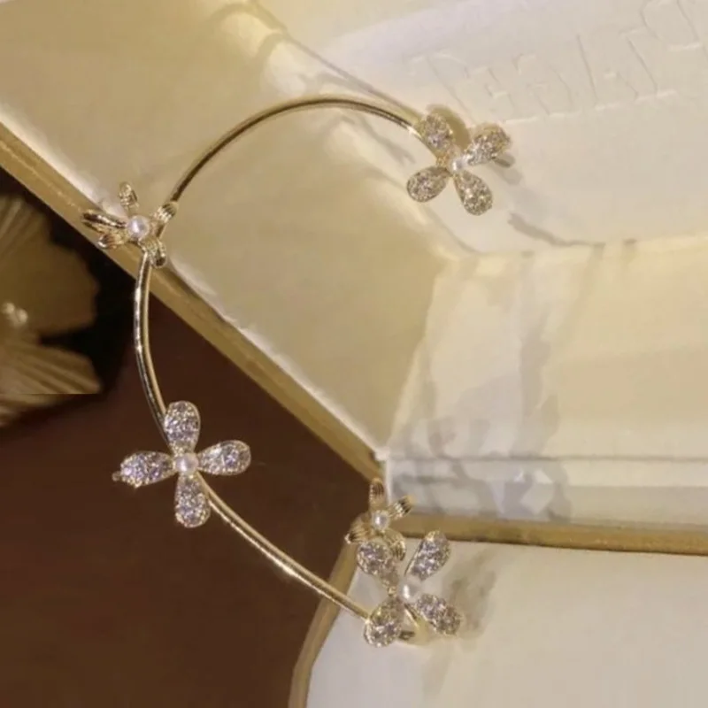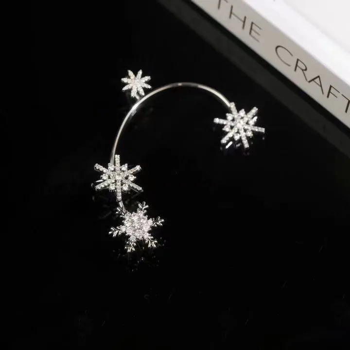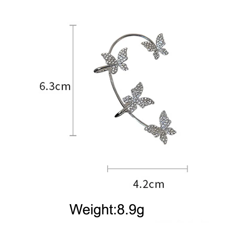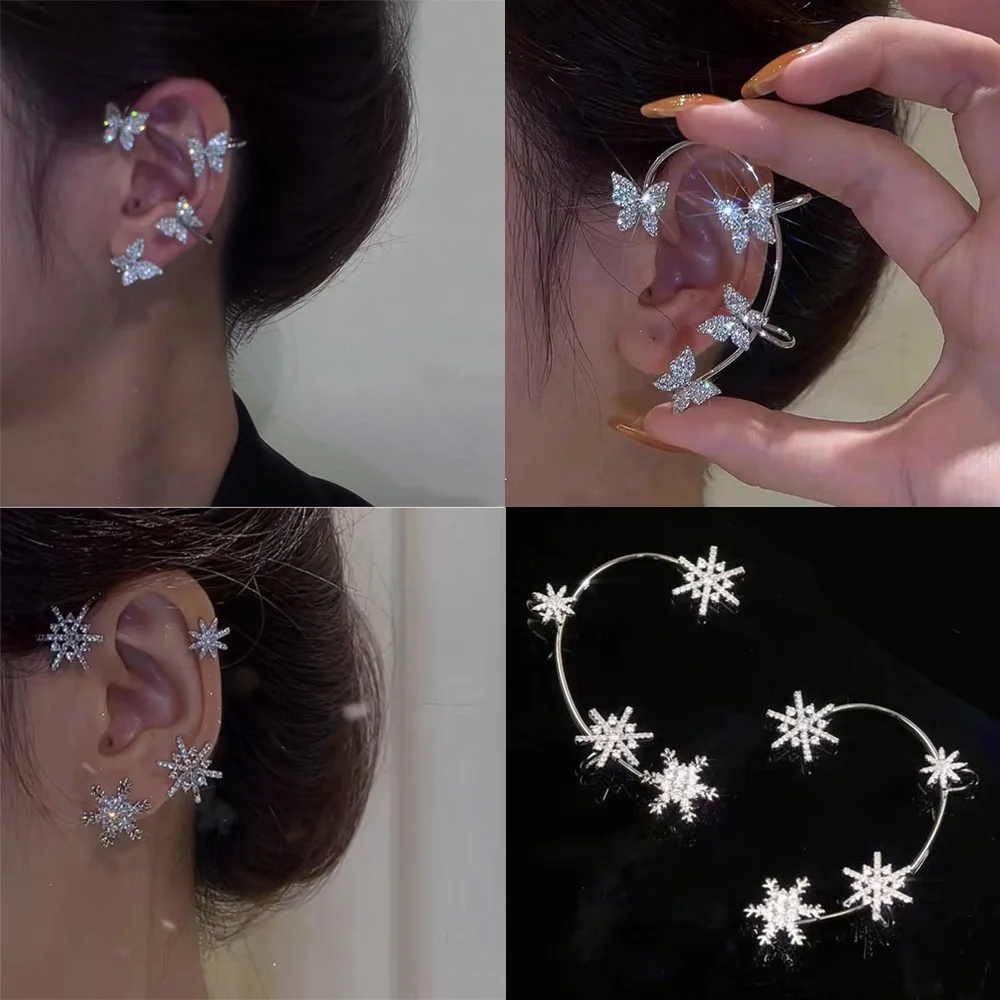Клипсы для ушей в стиле панк с кристаллами бабочки без пирсинга для женщин модные Посеребренные стразы Снежинка цветок серьги-манжеты подарок