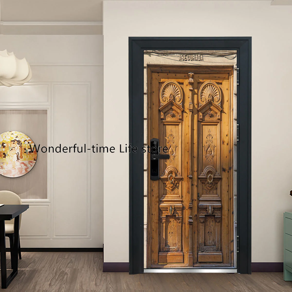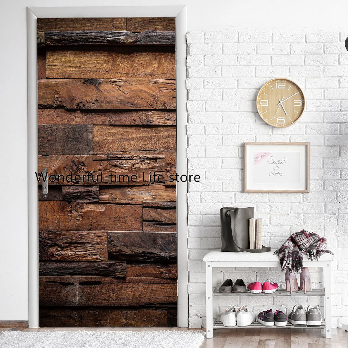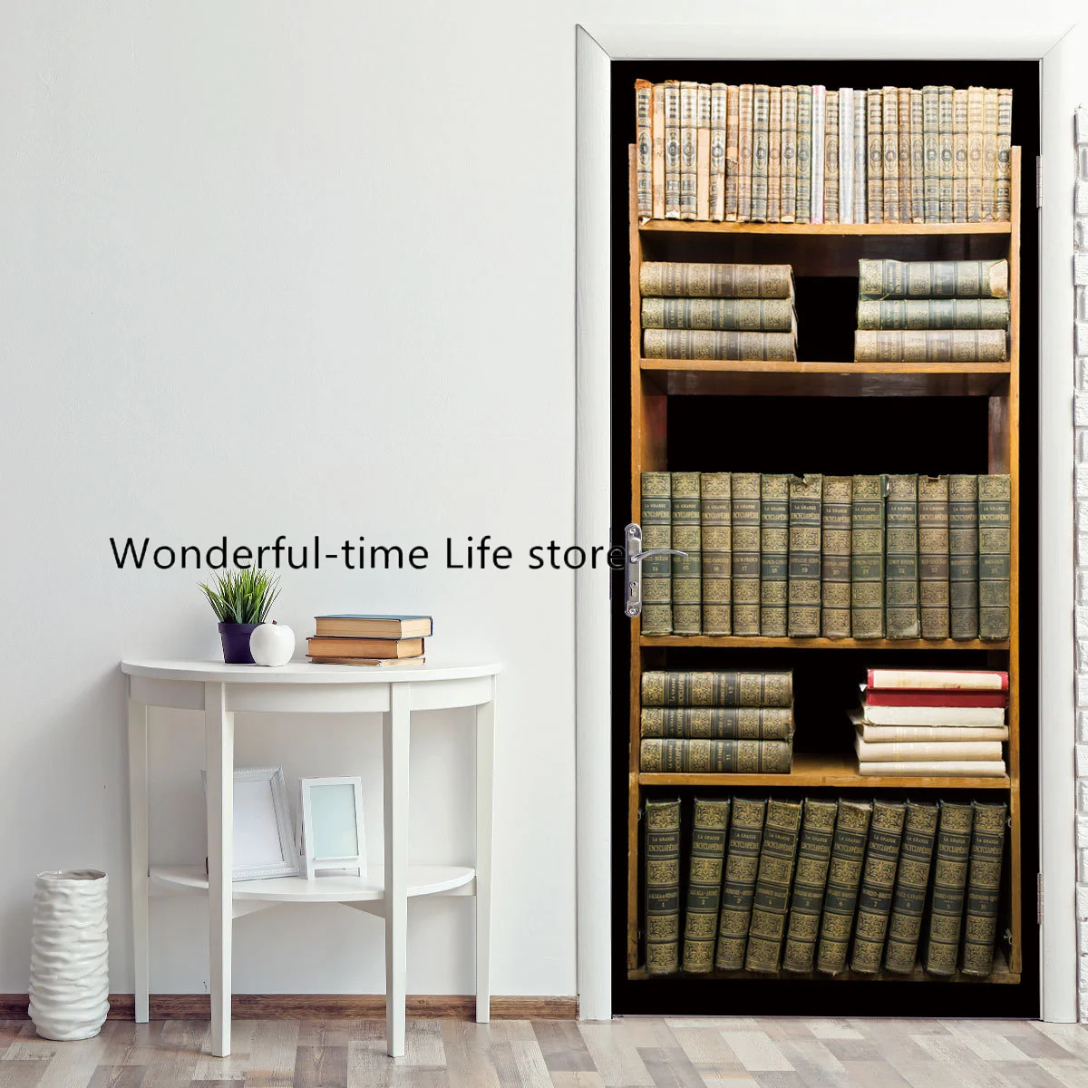 3D наклейка на дверь, деревянная книжная полка, водонепроницаемые самоклеящиеся обои для лифта, кухни, гардероба, украшение для входной двери, домашний декор
