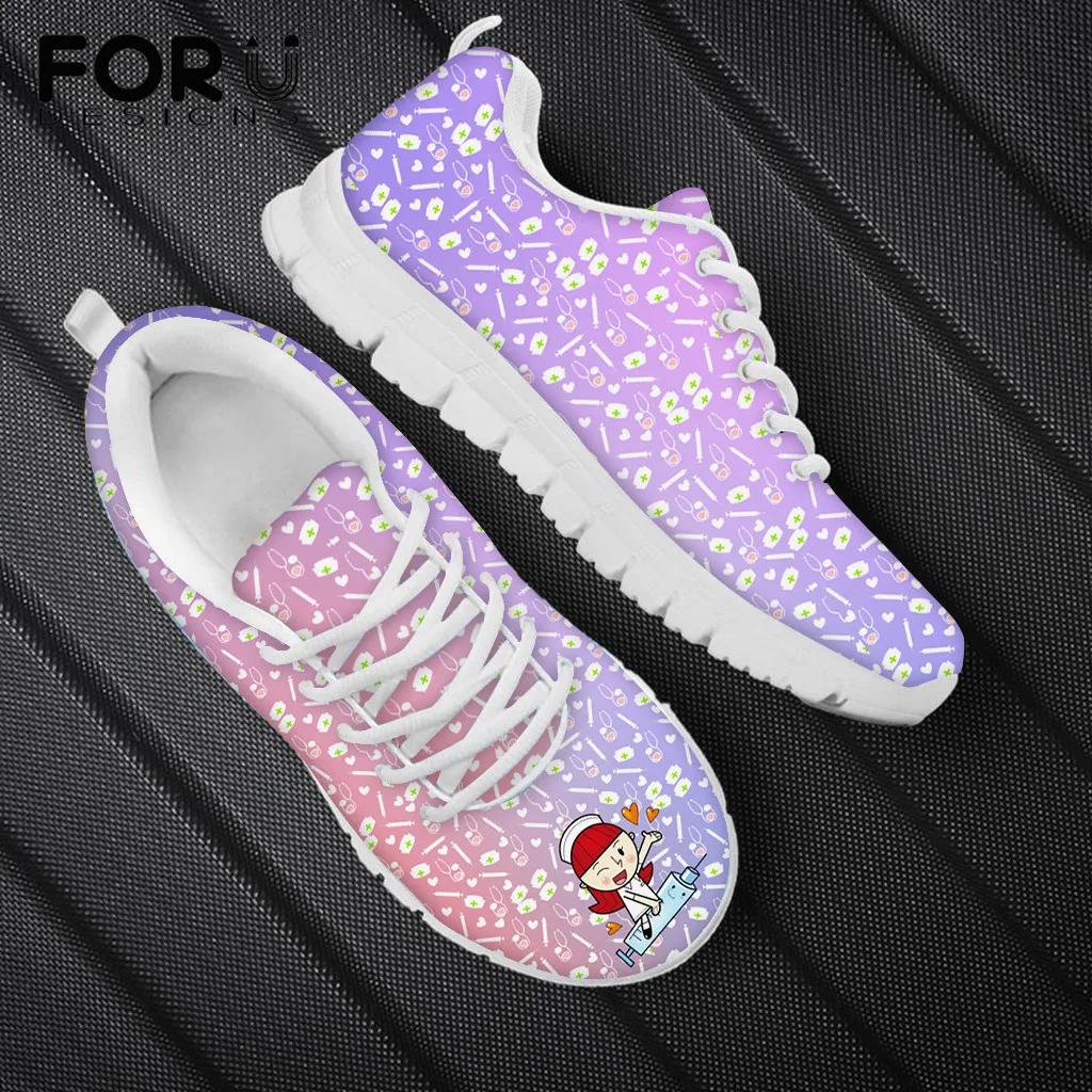 Белые Симпатичные кроссовки FORUDESIGNS для медсестер, женские высо...