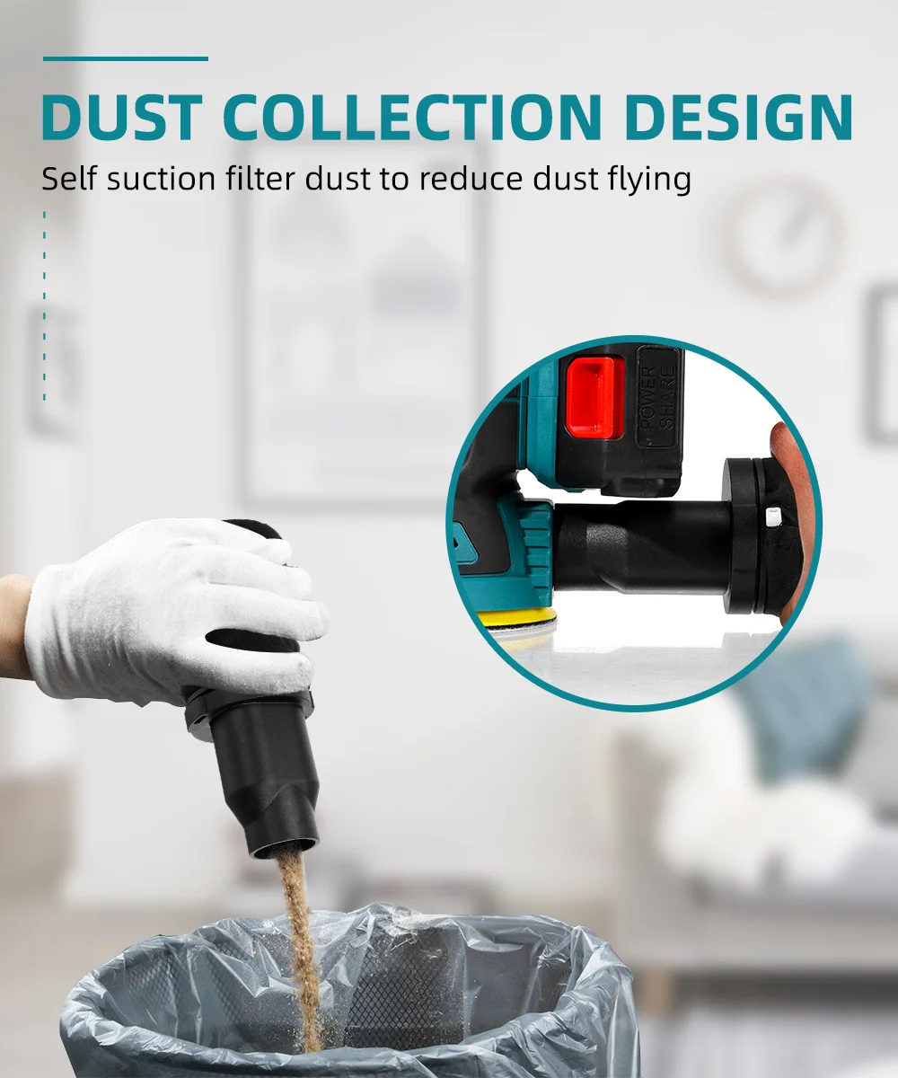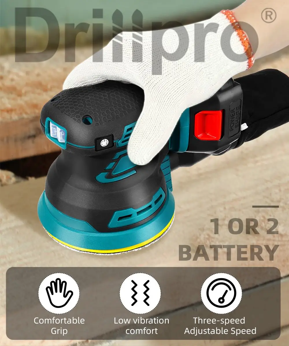 Особенности-Бумага всегда хорошо крепится-не запутывается и не разрывается.-Универсальная Рабочая во всех позиций с помощью 18 Вольт Аккумуляторная.-Длительный срок службы благодаря герметичному шарикоподшипнику и надежной конструкции.-Эргономичный дизайн с мягкими захватывающими поверхностями позволяет удерживать различные позиции.-Электрический шлифовальный станок с бесщеточным двигателем обеспечивает время работы и эффективность для выполнения работы.Посылка в комплекте1 x электрический шлифовальный станок1 или 2 батареиЗарядное устройство-1 шт.1 х мешок для сбора пыли9 х наждачная бумага1 х Руководство