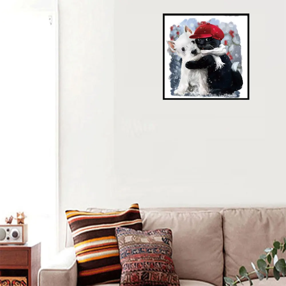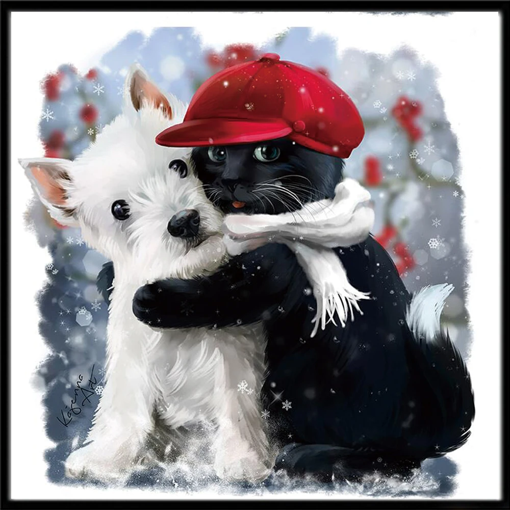 Алмазная 5D картина сделай сам, мультяшная кошка и собака, животное, цветок, алмазная вышивка, пейзаж, замок, мозаика, Рождественское украшение, подарок