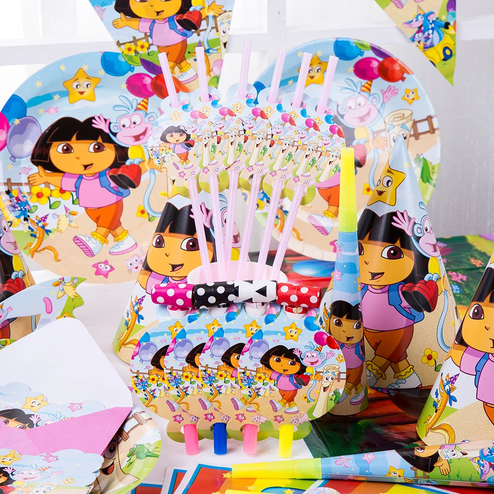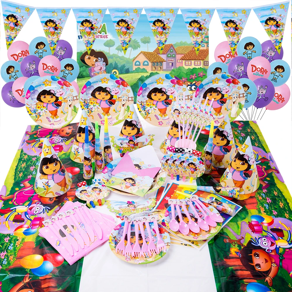 Набор украшений для дня рождения с изображением Доры, флагов и баннеров