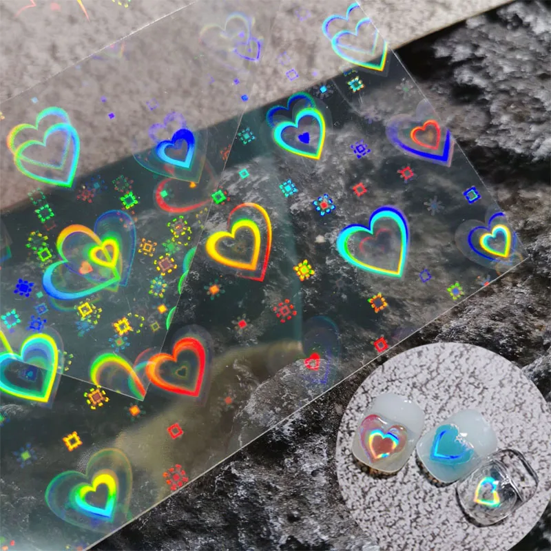 NAME1pcs Aurora Gradient Laser Heart Star Nail Art 3D Stickers Nail Decals Manicure Accessories Nail Art Decoration New Decals VSF-1