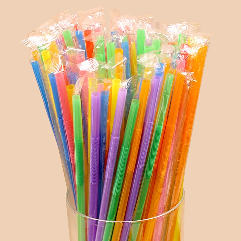 100 шт., флуоресцентные пластиковые гибкие трубочки для напитков