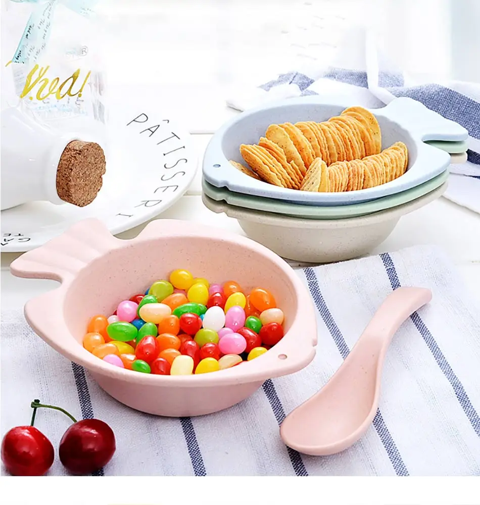 Детская посуда с ложкой, вилкой, чашей в форме рыбы из пшеничной соломы