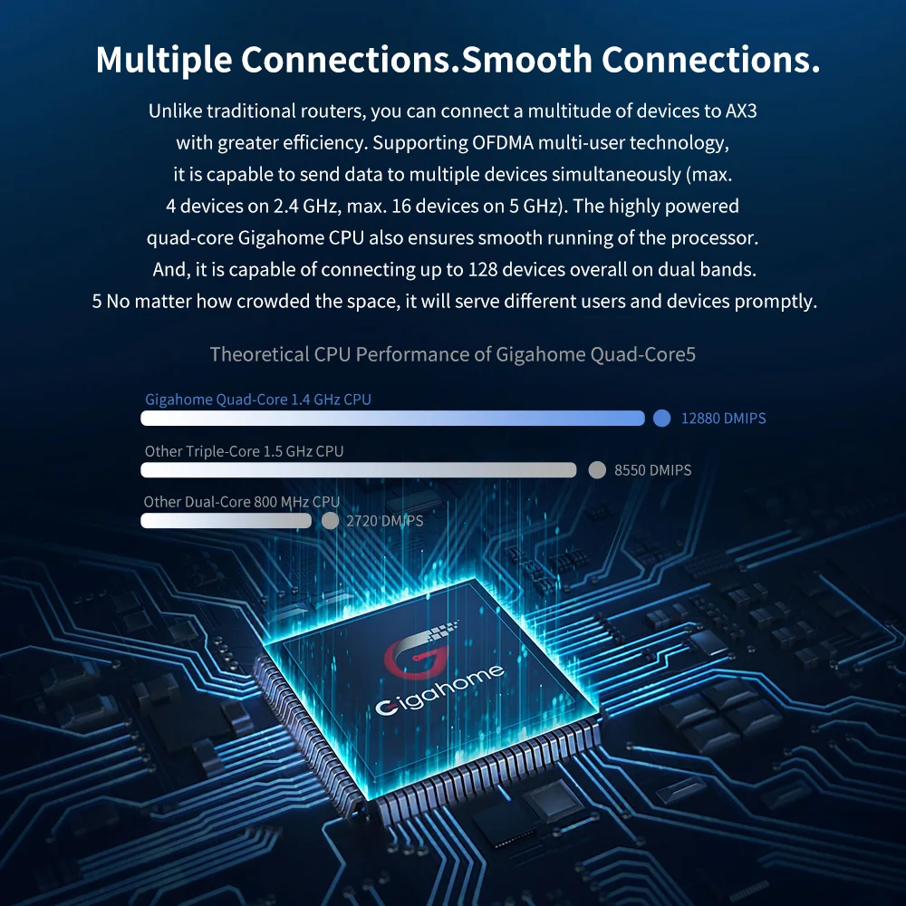 ⭕Полный гигабитный порт.⭕️ Двухъядерный 1,2 ГГц Процессор (AX3).⭕️ 4 ядра 1,4 ГГц Процессор (AX3 Pro).⭕Поддержка WiFi 6 + и до 3000 Мбит/с.⭕Поддержка интеллектуального управления приложениями.⭕Поддержка интерфейса настройки нескольких языков.