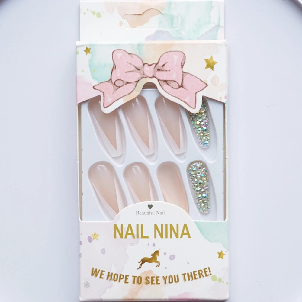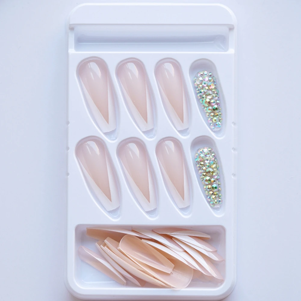 24 шт. длинные французские накладные ногти Роскошная полная наклейка Свадебная балерина накладные ногти съемные гвозди накладные ногти