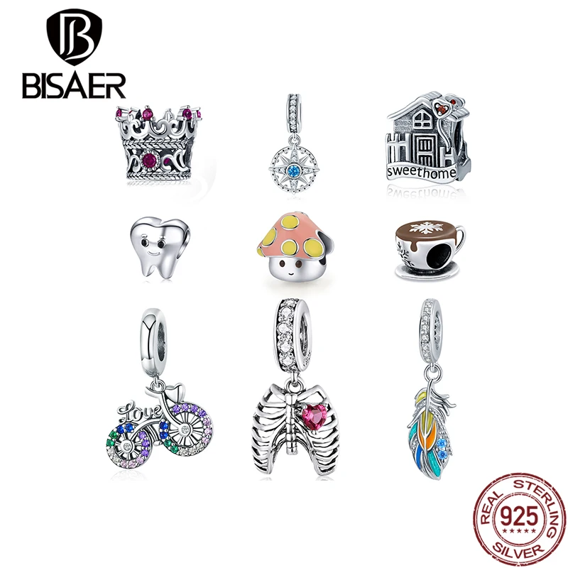 Шармы BISAER из стерлингового серебра 925 пробы, подвеска Diadema и мотоцикла с оригинальными фианитами, подходят для женских браслетов, ювелирные изделия в подарок