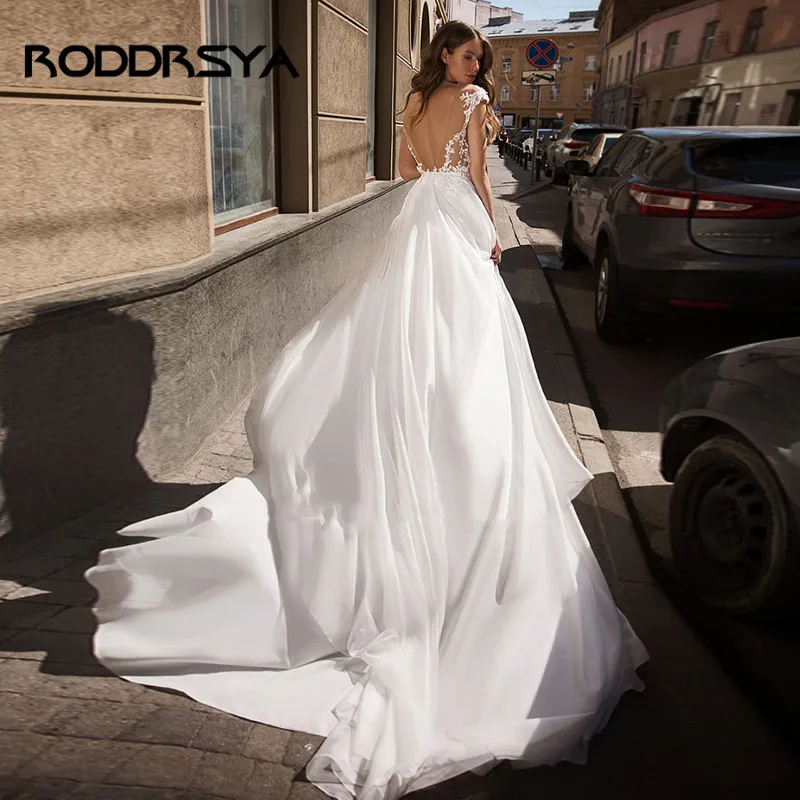 Шифоновое пляжное свадебное платье RODDRSYA в стиле бохо с рукавами-крылышками, сексуальное кружевное платье с Боковым Разрезом и аппликацией, платье невесты с открытой спиной