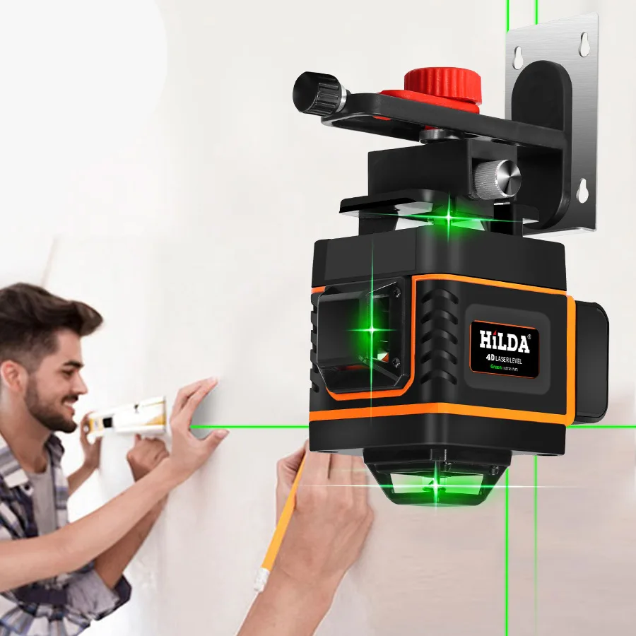 Мощный зеленый лазерный уровень HILDA, самонивелирующийся горизонтальный и вертикальный крестообразный 16-линейный 4D лазер, 360 градусов