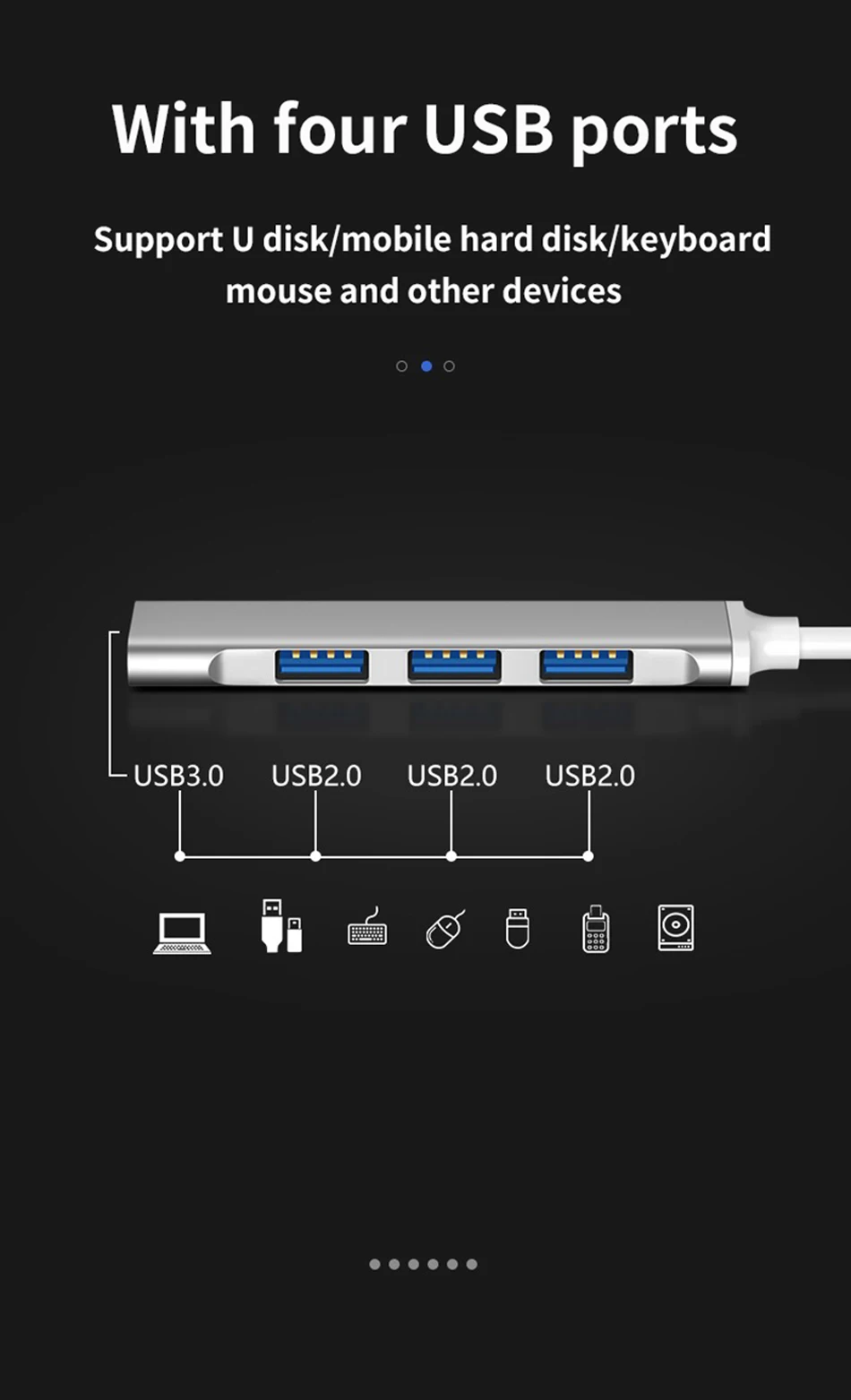USB-концентратор 3,0, 2,0 дюйма, 4 порта, USB-адаптер, расширитель ...