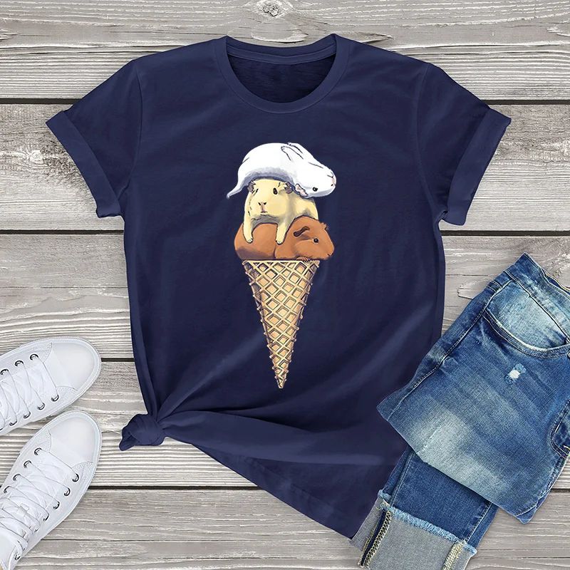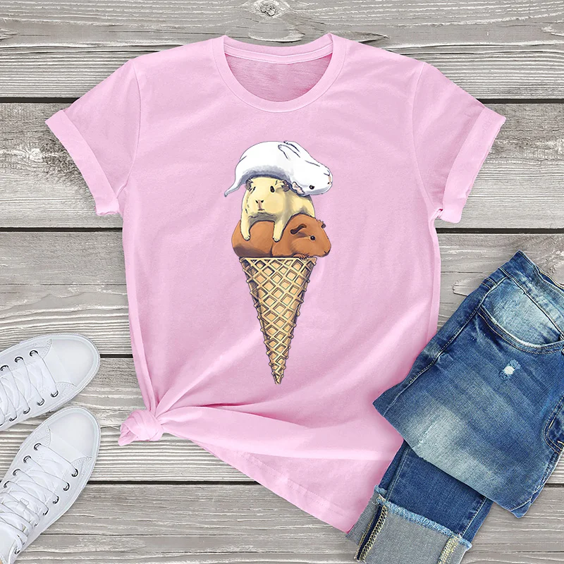 100% футболка из хлопка Kawaii femmes vêtements unisexe hauts dróle cochon d'inde créme glacée футболка surdimensionné femme Футболка mignon streetwear