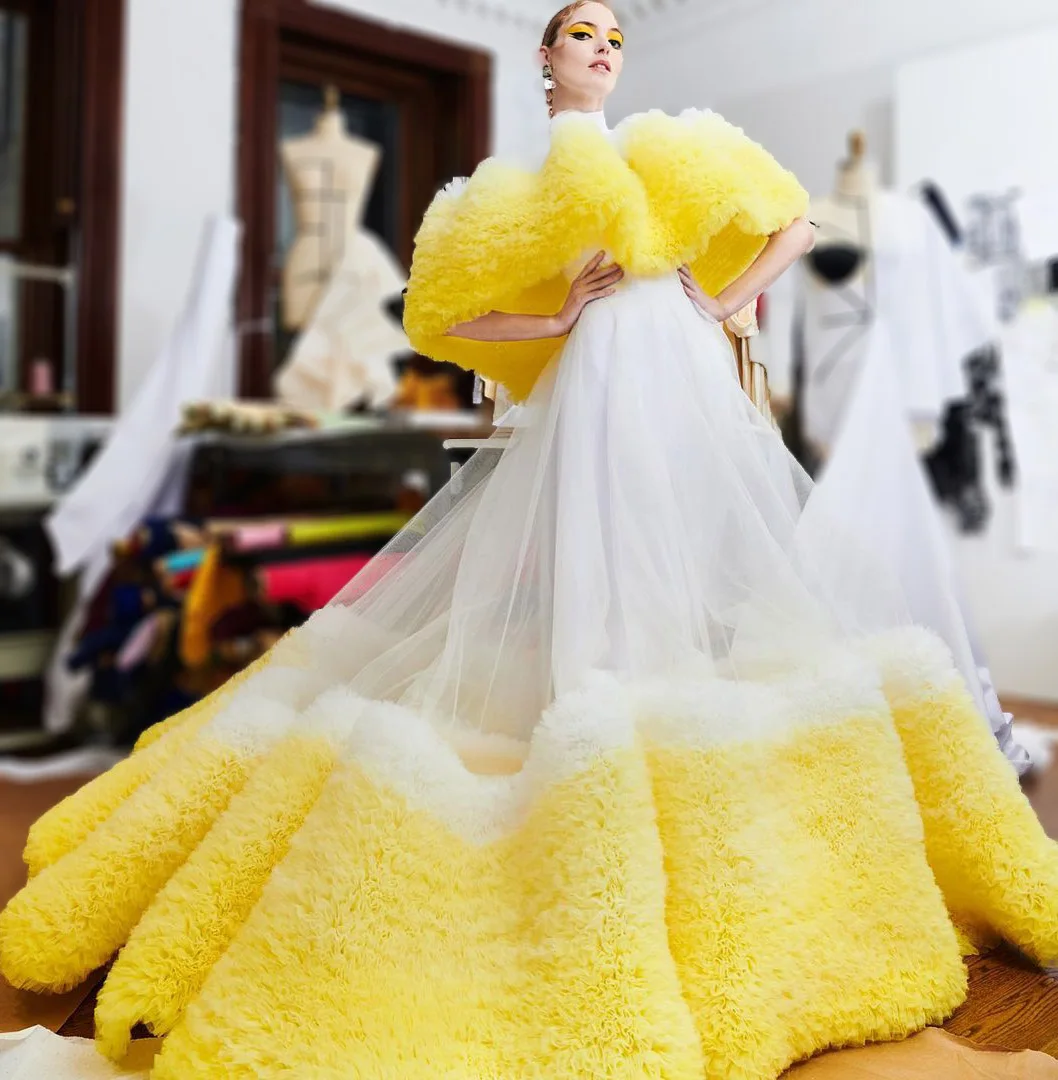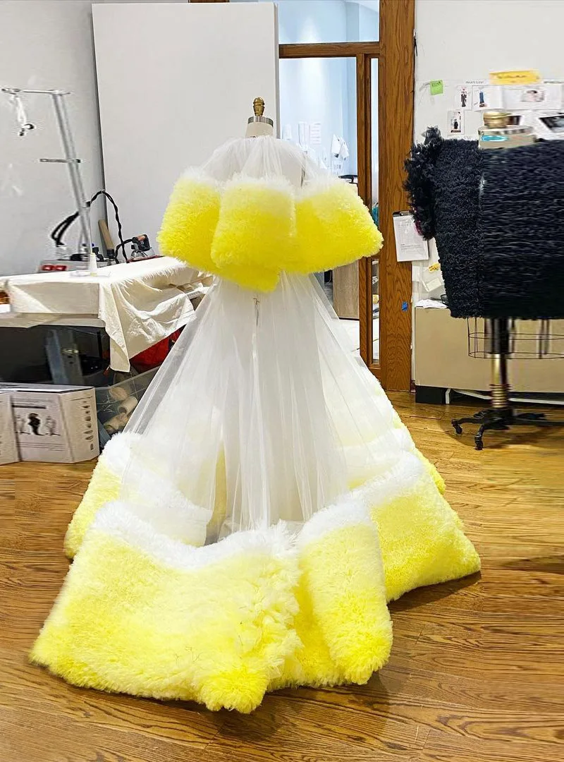 Женское вечернее платье со шлейфом, прозрачное бальное платье с высоким воротником и рукавами-крылышками, желтое и белое Тюлевое платье на заказ