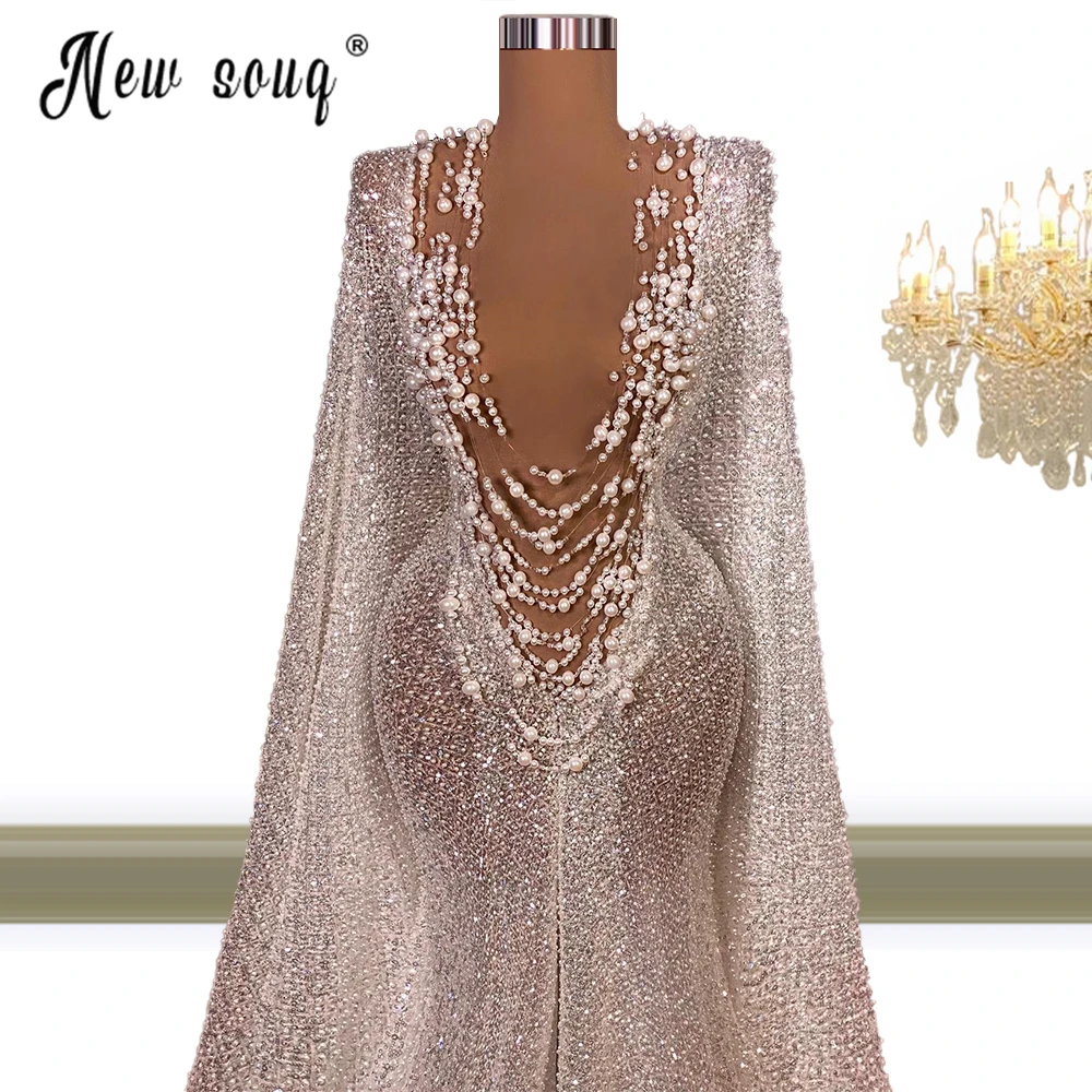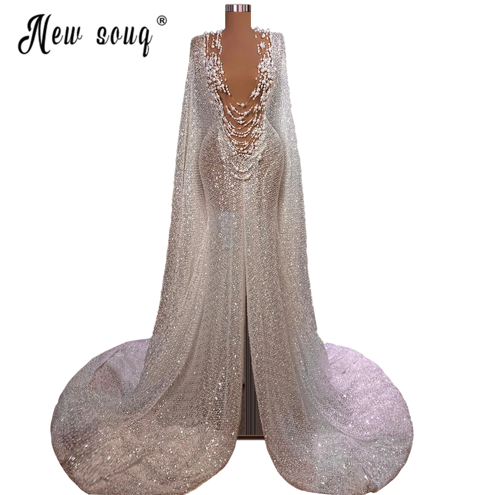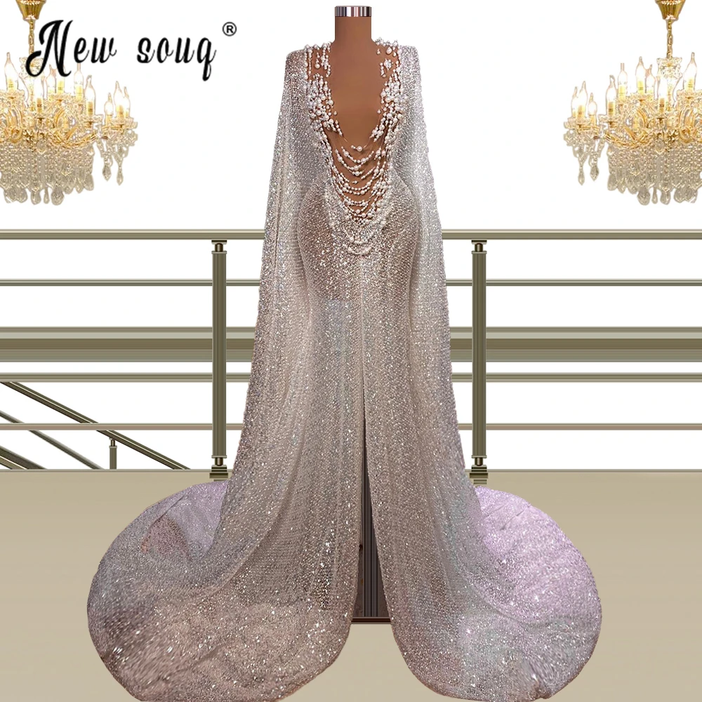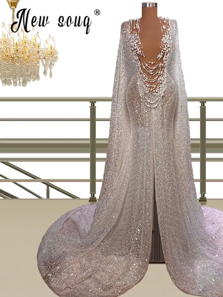 Арабское роскошное вечернее платье с длинным рукавом и накидкой, Дубай, Формальные платья для выпускного вечера для женщин, свадебные платья с глубоким v-образным вырезом для невесты
