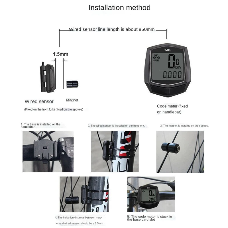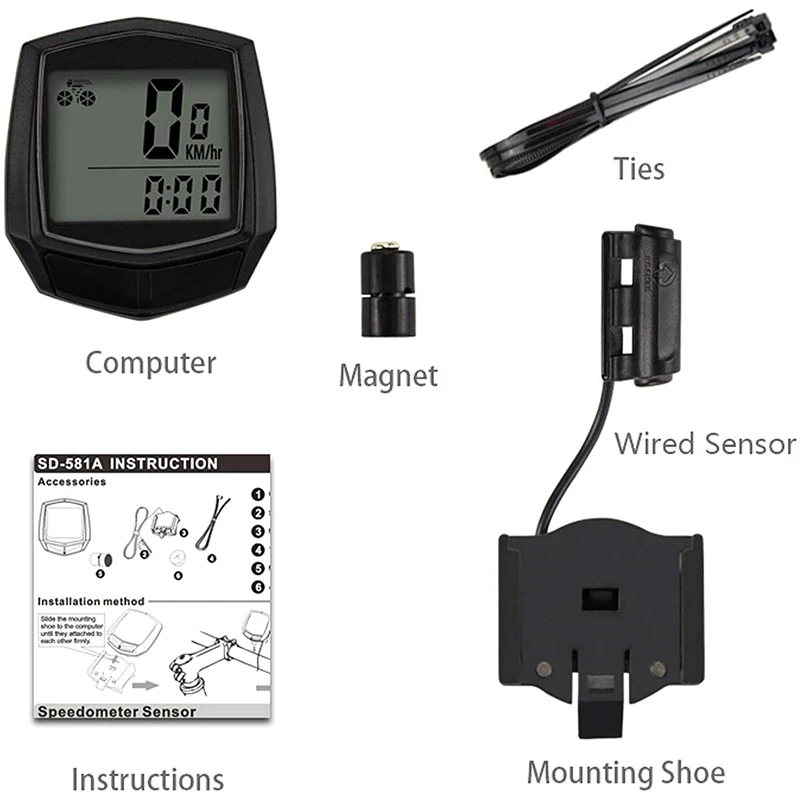 1 x велосипедный спидометр1 х Магнит1 x основание + Датчик кабеля