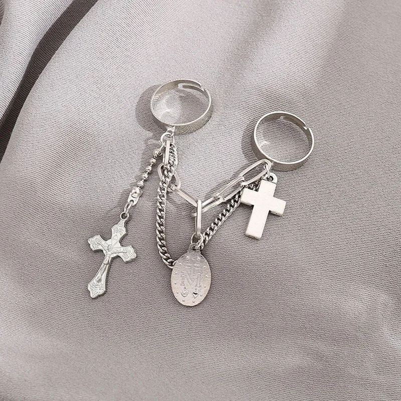 Крутые панк хип-хоп кольца на цепочке с крестом Иисуса для мужчин и женщин мужской многослойный Регулируемый бриллиантовый набор ювелирные изделия из сплава подарок для вечеринки