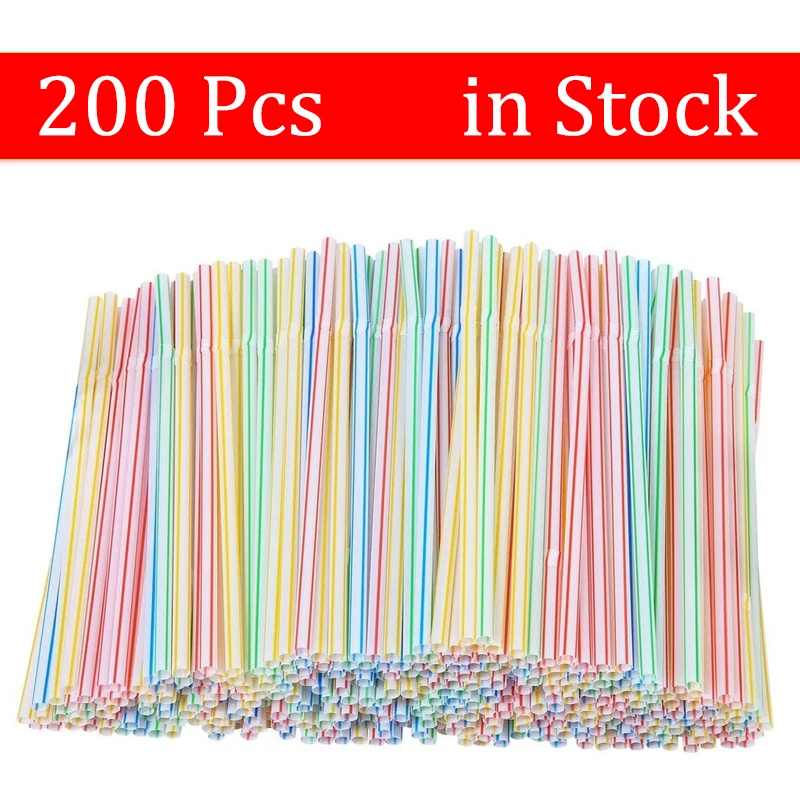 Соломинки Пластиковые Одноразовые в полоску, 200 шт.