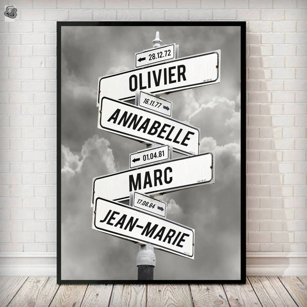 Персонализированный пересечение уличного знака на заказ 4 имена даты на холсте картина Семейный подарок домашний декор персонализированный плакат с именем