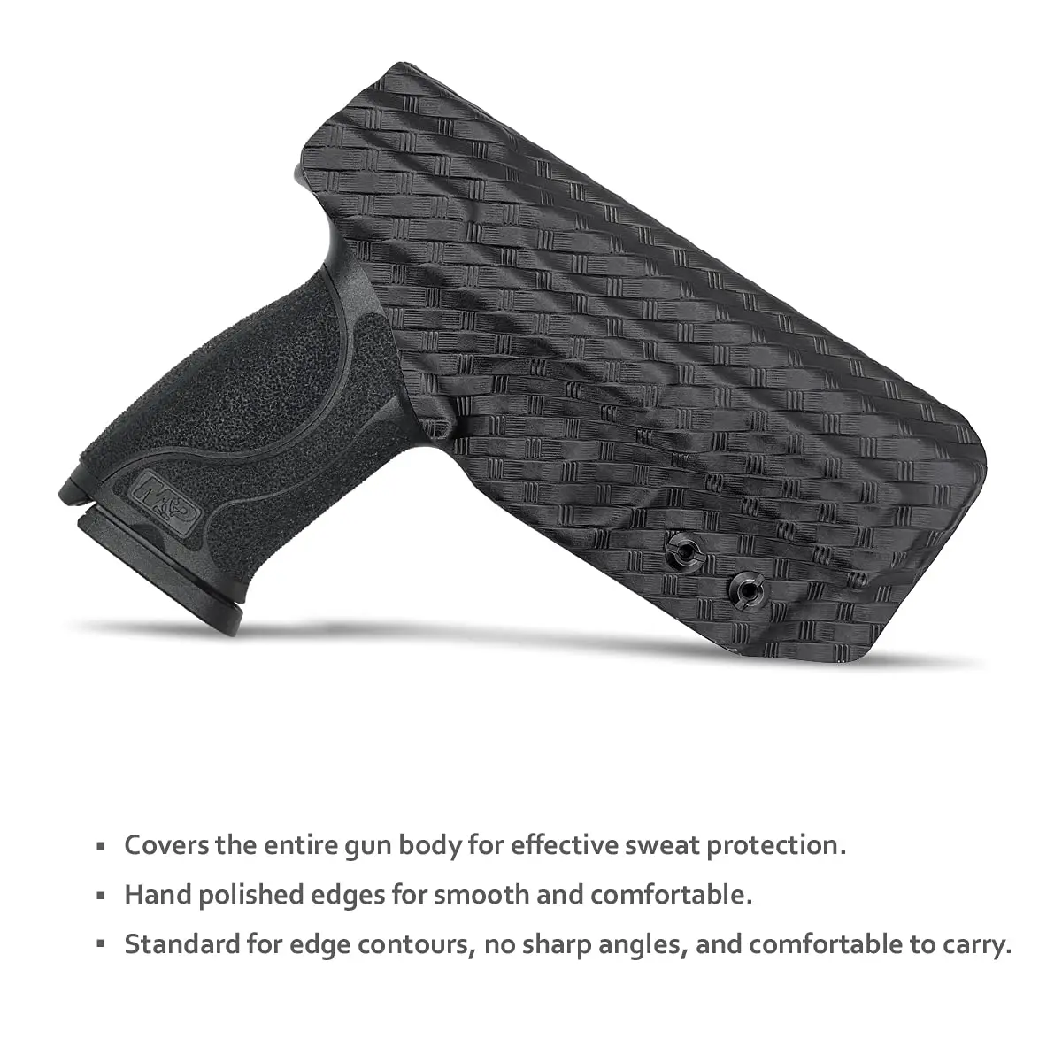 US .08 ”углеродное волокно KYDEX ручной работы: легкий, прочный, прочный, влагозащищенный и моющийся, обеспечивает комфорт и уверенность в любой ситуации. M & P 9 мм кобура/M & P 2,0 кобура охватывает весь корпус, эффективно предотвращая пот и избегая зажимов одежду можно безопасно и безопасно использовать.