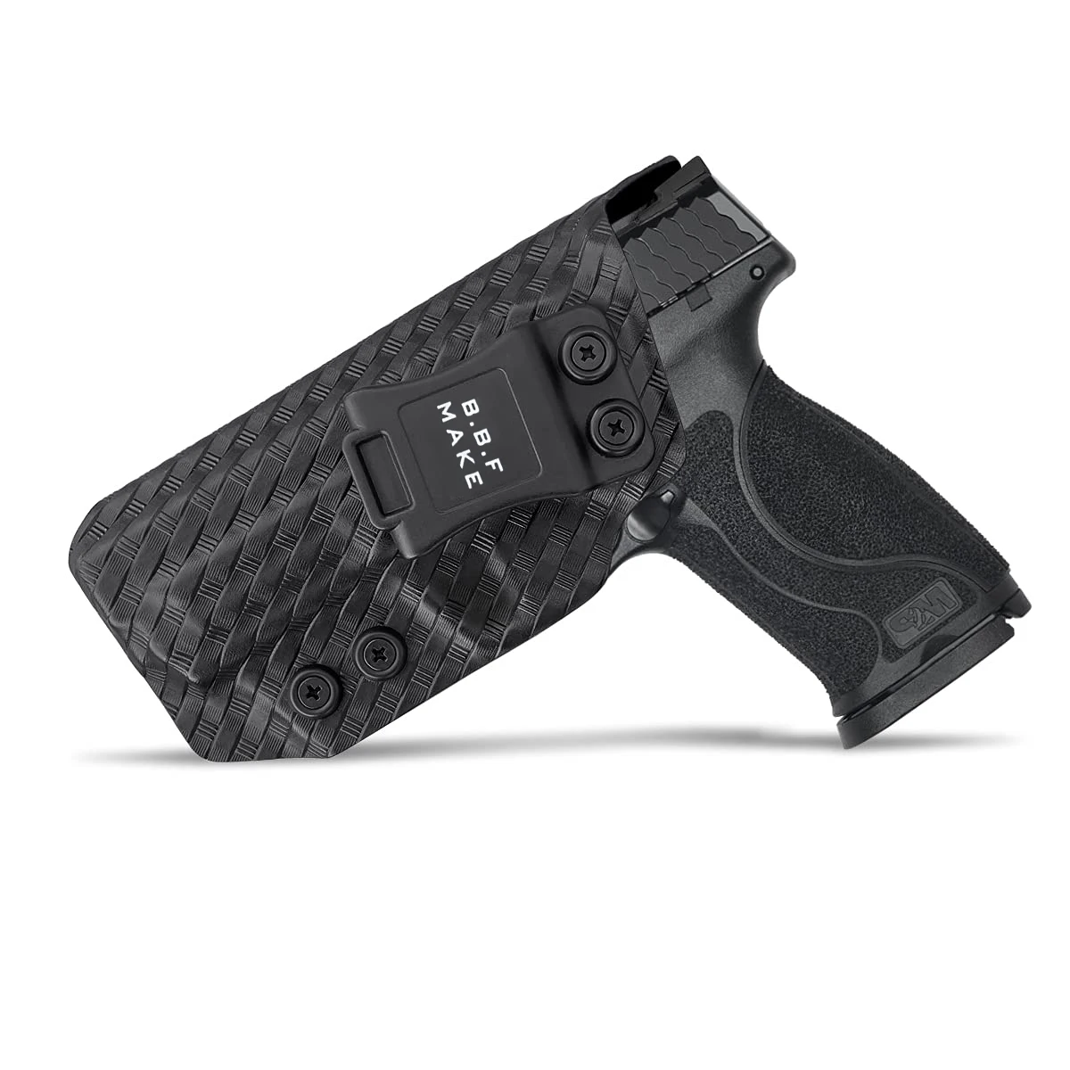 Носить с собой с уверенностью: пожалуйста, не стесняйтесь использоватьB.B.F сделатьПортативная Скрытая кобура для защиты кобуры M & P 9 мм. Это наше углеродное волокно третьего поколения Kydex кобура IWB, специально разработанное для пистолета M & P 9 мм/M & P 2,0, не только высокоточное, но и прочное и долговечное, И может быть скрыта и портативна, так что вы можете защитить себя в любое время и в любом месте.