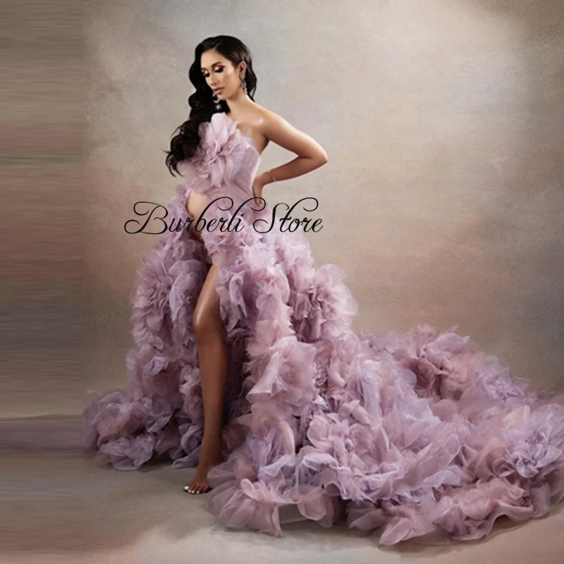 Элегантные пышные длинные тюлевые платья для беременных пикантные п...
