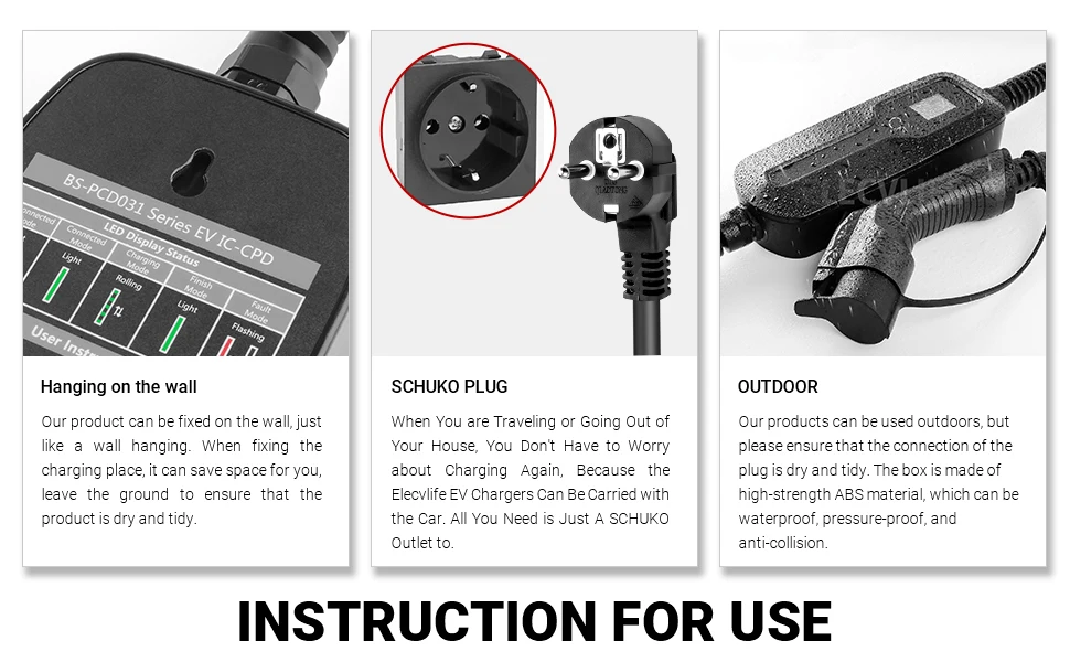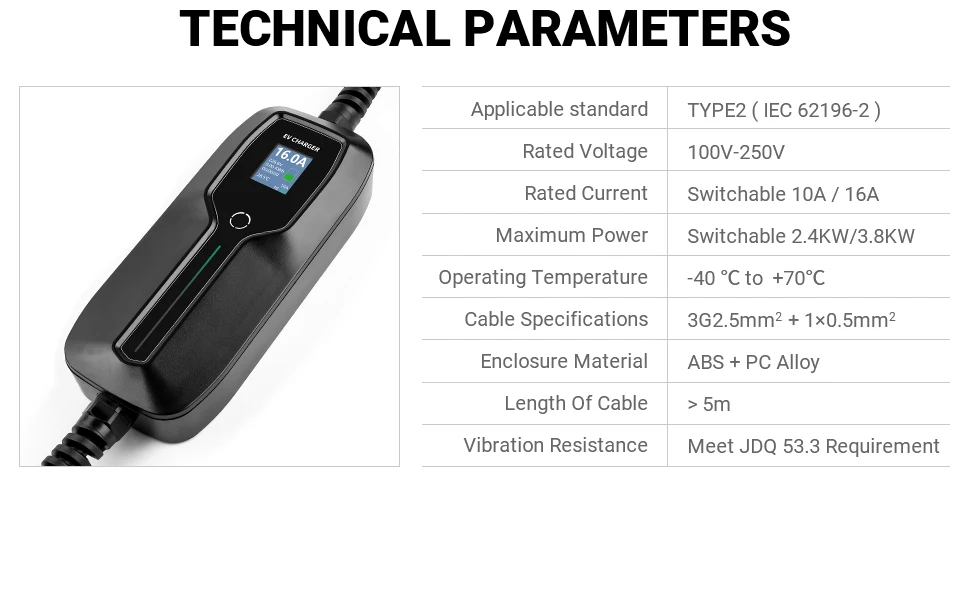Домашнее использование в помещении/на улице, подходит для всех электрических транспортных средств типа 2, сертифицированных CE и TUV.